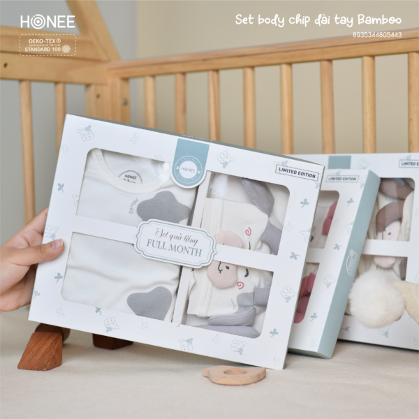 In the very first days of life, your baby is tiny and needs endless love. Every hug, every gentle touch from Mom and Dad is a whole world of peace that lulls your baby to sleep. Honee also wants to send a tender “Touch of Love” through every soft fiber in this Bamboo long-sleeve body suit set.
