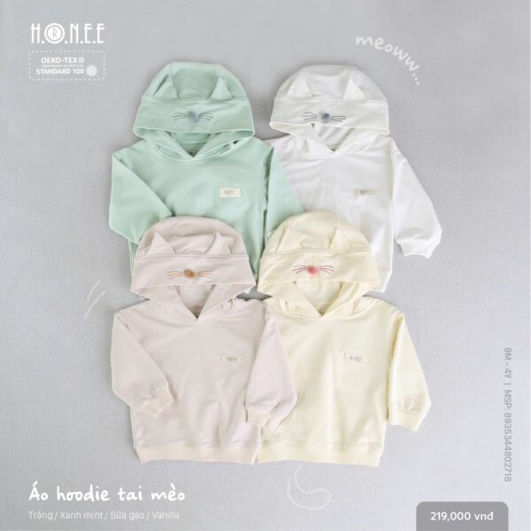 This Cute Kitty Hoodie for kids is made from 100% cotton, ensuring ultimate comfort and safety. Certified by Oeko-Tex, it meets the highest standards for children’s clothing, guaranteeing a soft, gentle touch for your little one. The playful kitty design adds a fun touch to their wardrobe, making it both cozy and cute.