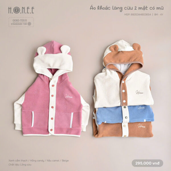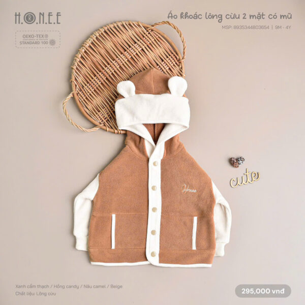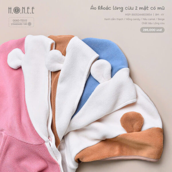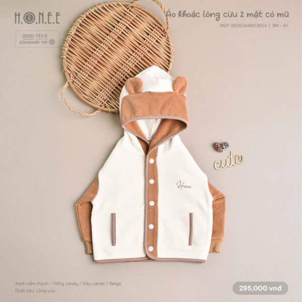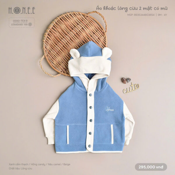 Keep your little one warm and adorable with this Double-sided Fleece Jacket with Hood, featuring an irresistibly cute bear hat design.
