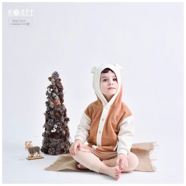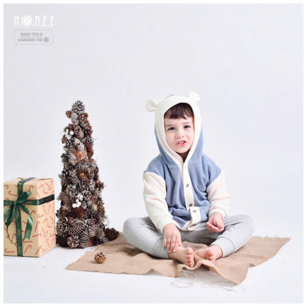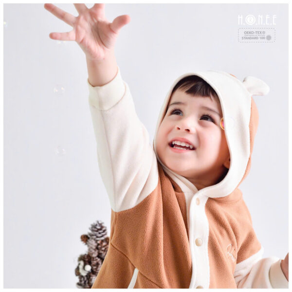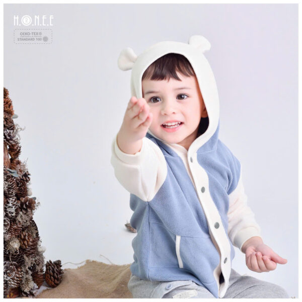 Made from soft, cozy fleece on both sides, this jacket is perfect for chilly days, offering comfort and warmth in a fun, playful style. The hood is designed with two cute bear ears, adding a touch of whimsy that your child will love.