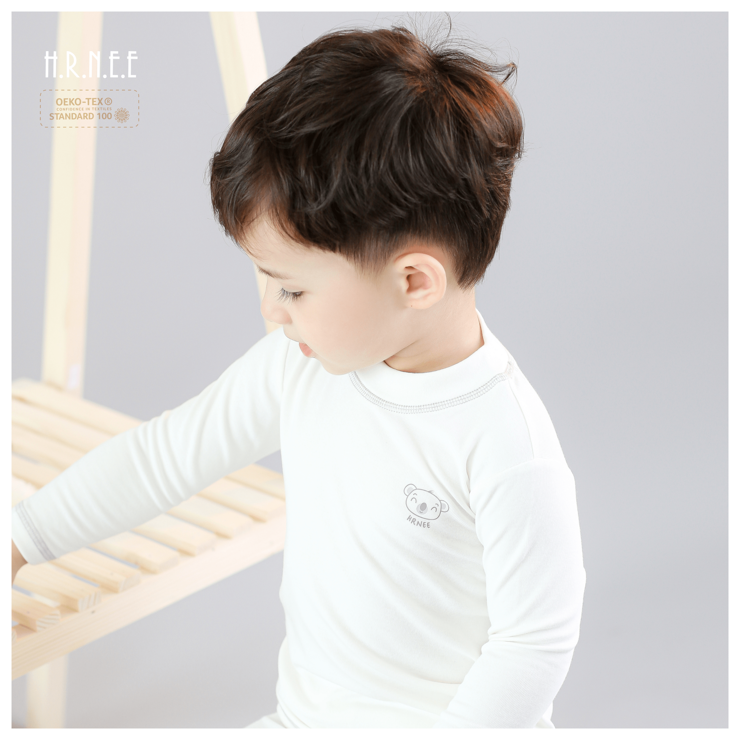The shirt features a charming little bear on the heart, adding an extra touch of fun. Designed for active kids, it offers excellent stretch and durability, ensuring it moves with them throughout the day while providing a snug, cozy fit. Ideal for layering in colder weather, this shirt keeps your little one comfortable and happy all day long.