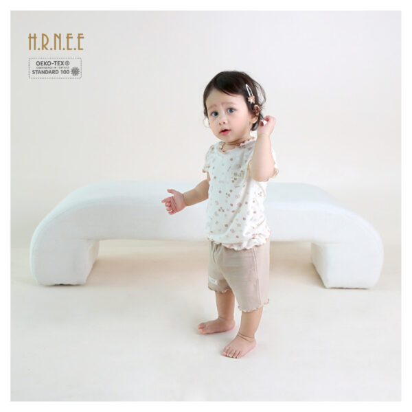 The Modal Sweet Sleeve Shorts for girls showcase a charming floral and leaf print with ruffled trims for added femininity. Crafted from soft, breathable modal fabric, these shorts are ideal for summer, keeping kids cool and comfortable while offering excellent moisture absorption and safety.