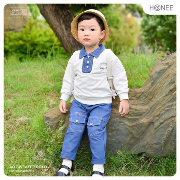No need to be fancy your little one still looks neat and adorable in this polo-collared sweater, just formal enough for school and playful enough for outings.