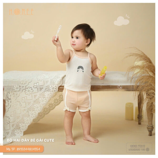 Bộ hai dây bé gái cute chất liệu Modal tăm diêu thấm là một sản phẩm vô cùng đáng yêu và tiện dụng dành cho các bé yêu. Với thiết kế đơn giản nhưng không kém phần tinh tế, bộ đồ này giúp các bé cảm thấy thoải mái và dễ chịu trong suốt cả ngày dài.