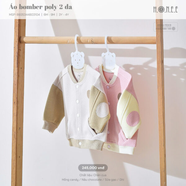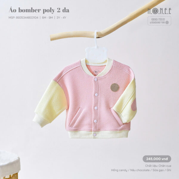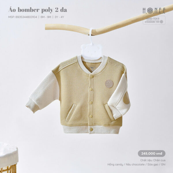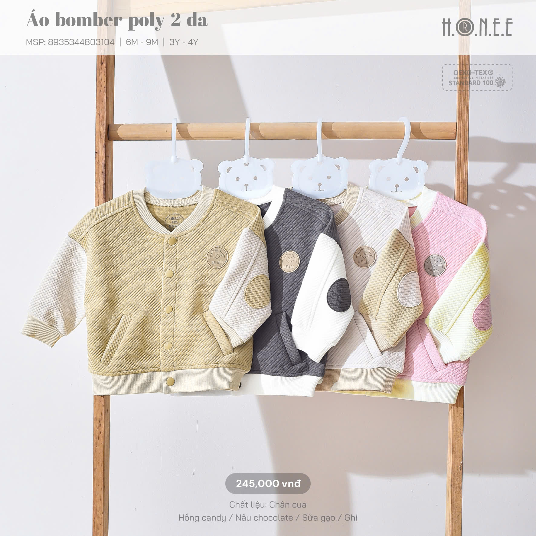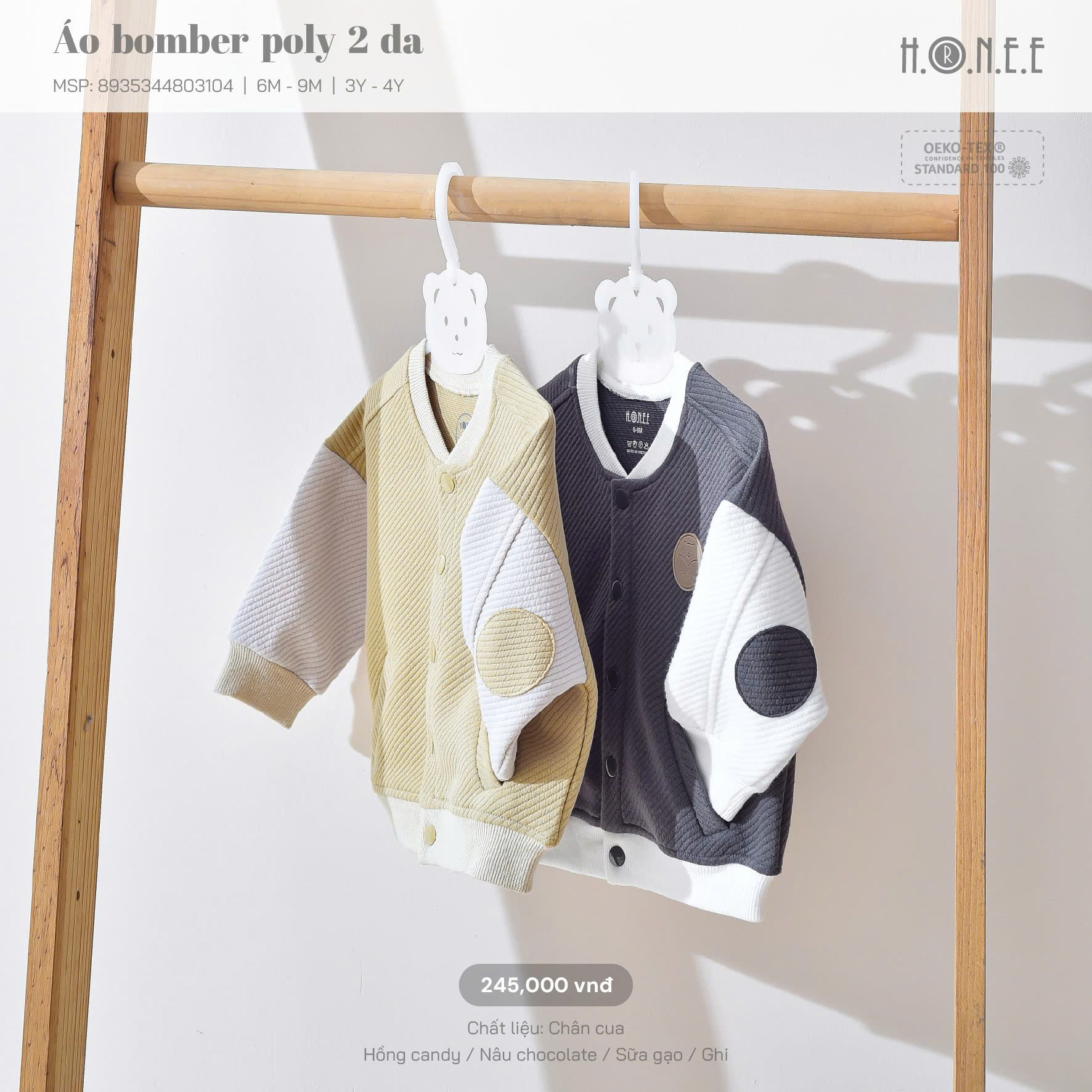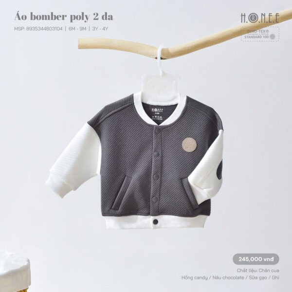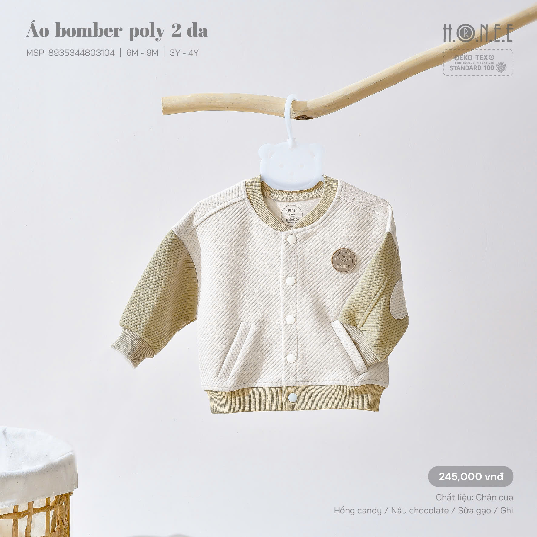 Áo bomber poly 2 da là thiết kế được HRNEE mang đến như một món quà mùa đông dành cho trẻ nhỏ, lấy cảm hứng từ thời trang của các vận động viên, mang lại vẻ sporty, khỏe khoắn và năng động.