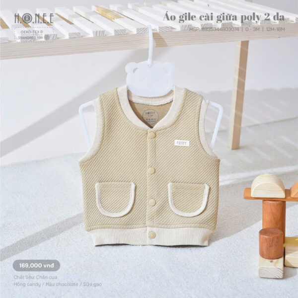 Áo gile cài giữa Poly 2 da là thiết kế dành riêng cho bé sơ sinh, được làm từ chất nỉ chân cua cao cấp, mang đến độ dày dặn, ấm áp và mềm mại tuyệt đối.
