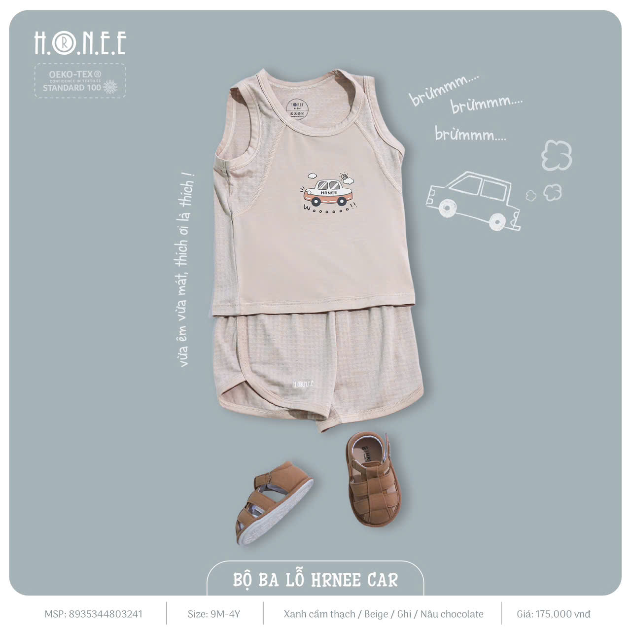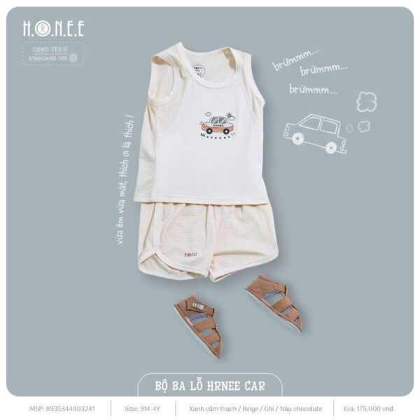 Bộ ba lỗ HRNEE CAR được làm từ vải bamboo cao cấp, mang lại cảm giác mềm mại và thoáng mát cho bé. Phần thân trước của bộ đồ được thiết kế nhẹ nhàng, giúp bé cảm thấy dễ chịu trong mọi hoạt động. Đặc biệt, phần nách và thân sau của bộ đồ sử dụng vải modal touch với các lỗ thoáng khí, giúp lưu thông không khí tốt, ngăn ngừa tình trạng bí bách hay toát mồ hôi, giúp bé luôn thoải mái khi vui chơi cả ngày.