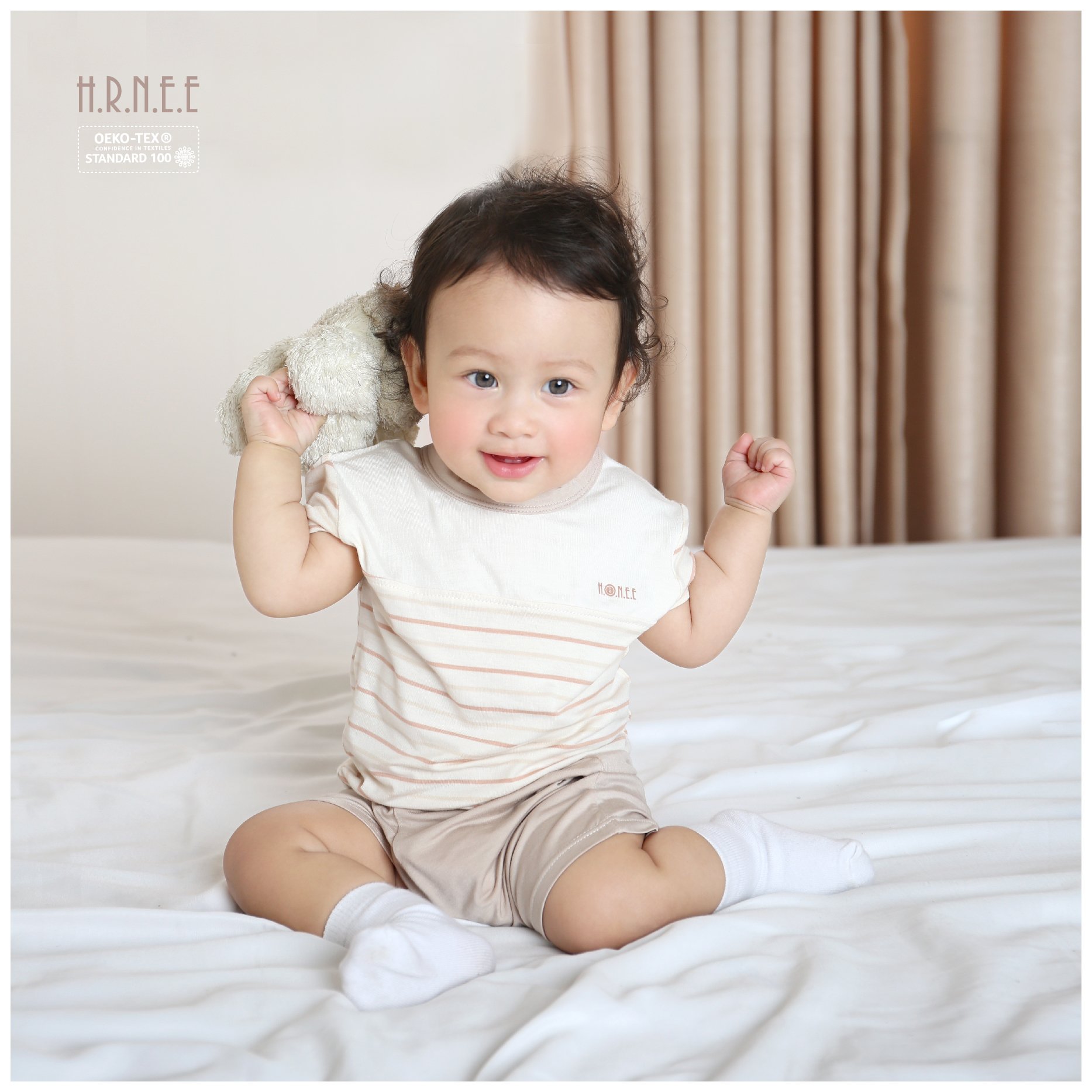 Chất liệu bamboo tự nhiên từ sợi tre cao cấp mang lại cảm giác mềm mại và thoáng mát, thích hợp cho làn da nhạy cảm của trẻ nhỏ. Thiết kế cộc tay giúp bé thoải mái vận động mà không bị bó chặt, đồng thời tạo điểm nhấn thời trang cho trang phục hàng ngày của bé.