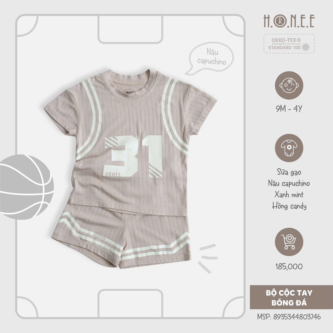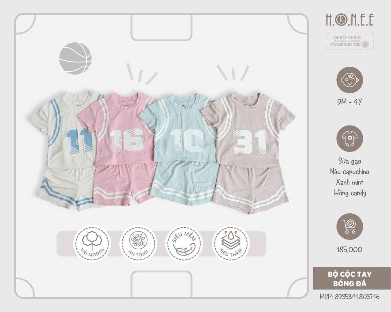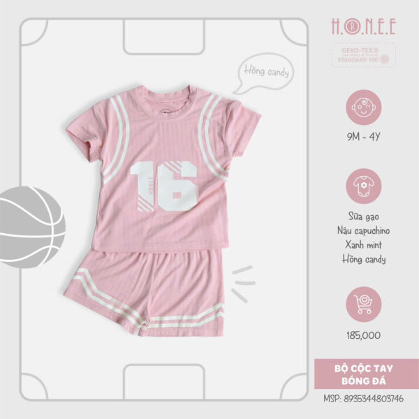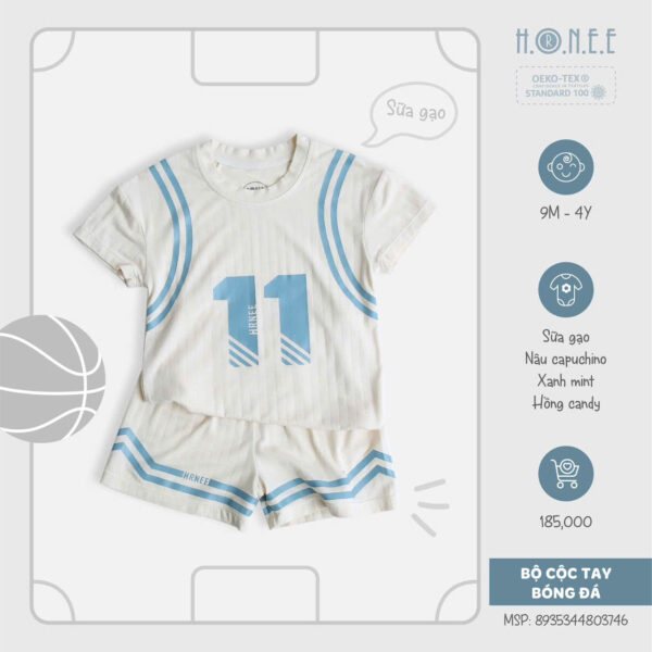 Với thiết kế cộc tay năng động, bộ đồ giúp bé dễ dàng di chuyển, chạy nhảy mà không lo bị cản trở. Màu sắc tươi sáng và họa tiết thể thao nổi bật tạo nên vẻ ngoài đáng yêu và cá tính cho bé. Bộ cộc tay này không chỉ thích hợp cho các hoạt động thể thao như chơi bóng, mà còn là lựa chọn lý tưởng khi bé tham gia các hoạt động ngoài trời.