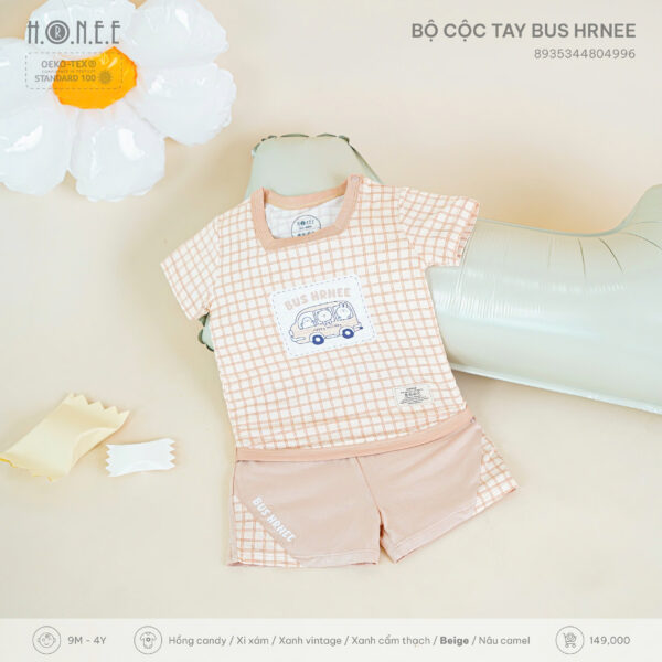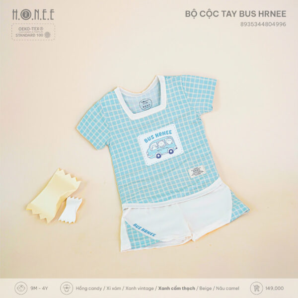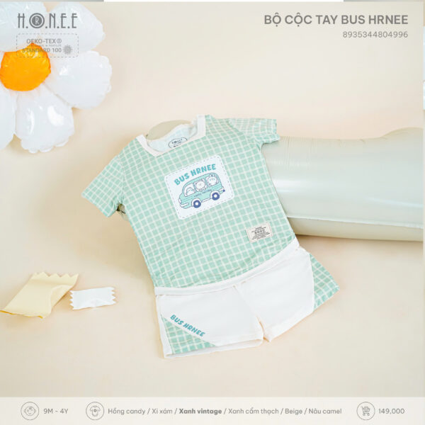 Mang phong cách dễ thương, năng động và thời trang, Bộ cộc tay Bus HRNEE là sản phẩm hoàn hảo dành cho các bé từ 9 tháng đến 4 tuổi trong những ngày hè nắng ấm. Với thiết kế hình chiếc xe buýt ngộ nghĩnh cùng tông màu pastel nhẹ nhàng, bộ đồ không chỉ khiến bé thích thú mà còn mang lại cảm giác thoải mái tối đa khi mặc.