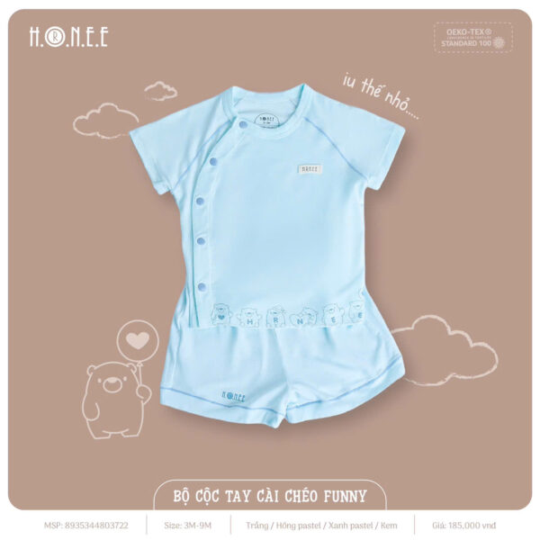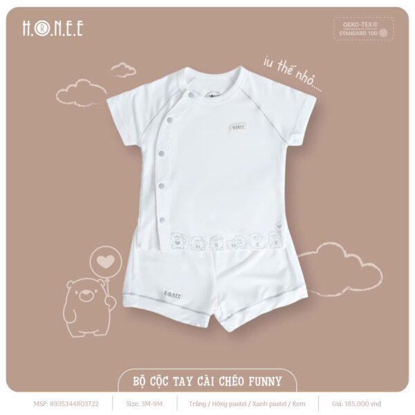 Bộ cộc tay cài chéo Funny làm từ vải BamBoo Siêu Thấm, siêu mềm mại và thoáng khí, giúp bé luôn khô ráo, dễ chịu. Với khả năng thấm hút gấp 4 lần cotton, vải bamboo nhanh chóng bay hơi mồ hôi và giữ cho làn da bé luôn thông thoáng. Chất liệu kháng khuẩn tự nhiên Bamboo giúp tiêu diệt đến 99,8% vi khuẩn, ngăn ngừa mùi và ẩm mốc, bảo vệ sức khỏe bé yêu. Không chứa hóa chất độc hại, không gây kích ứng da và không xơ cứng sau khi giặt.