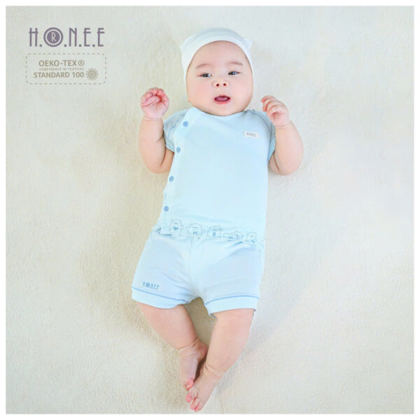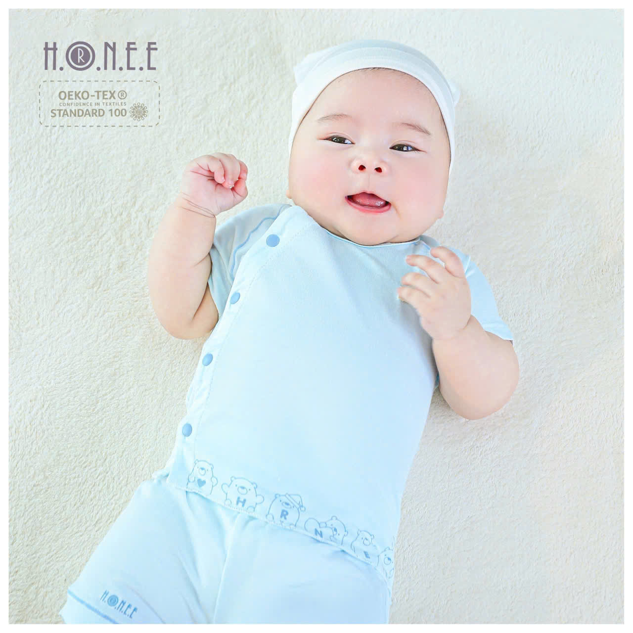 Đặc biệt, Hình in gia đình gấu HRNEE siêu dễ thương ở vạt áo tạo nét độc đáo và đáng yêu cho bé.