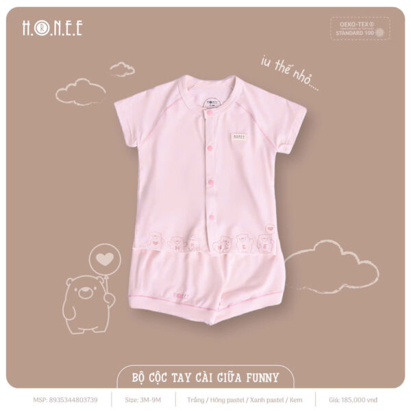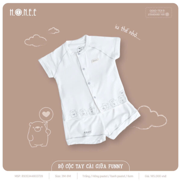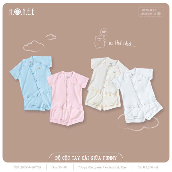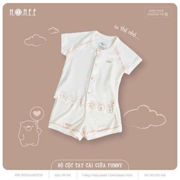 Bộ cộc tay cài giữa Funny được làm từ chất liệu vải bamboo siêu thấm, mang lại sự mềm mại, thoáng mát và khả năng thấm hút mồ hôi vượt trội. Vải bamboo không chỉ thấm hút gấp 4 lần cotton mà còn thông thoáng như hệ hô hấp, giúp bé luôn khô ráo và dễ chịu suốt cả ngày. Chất liệu này còn có đặc tính kháng khuẩn tự nhiên, ngăn ngừa mùi hôi và ẩm mốc, bảo vệ làn da nhạy cảm của bé.
