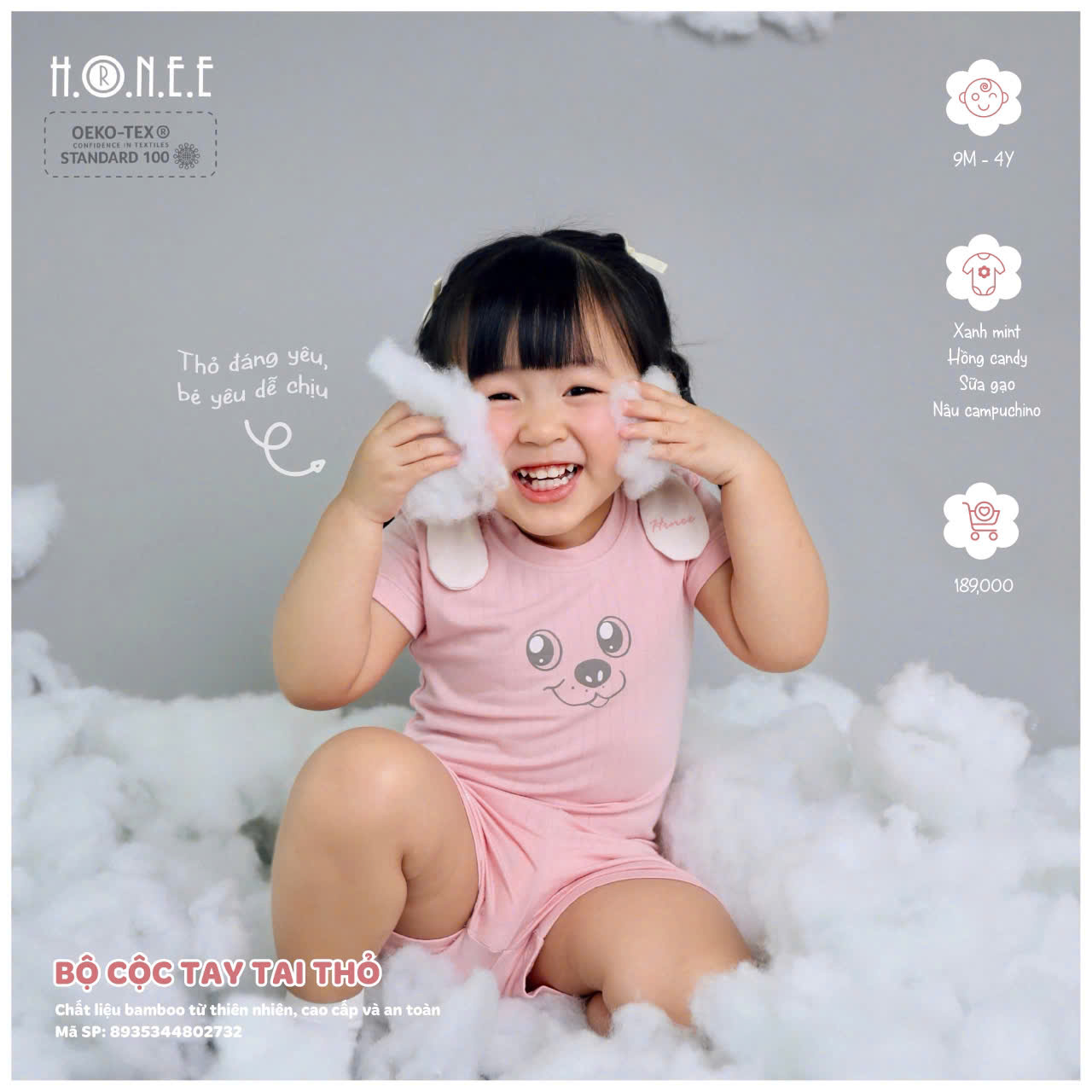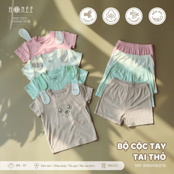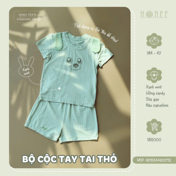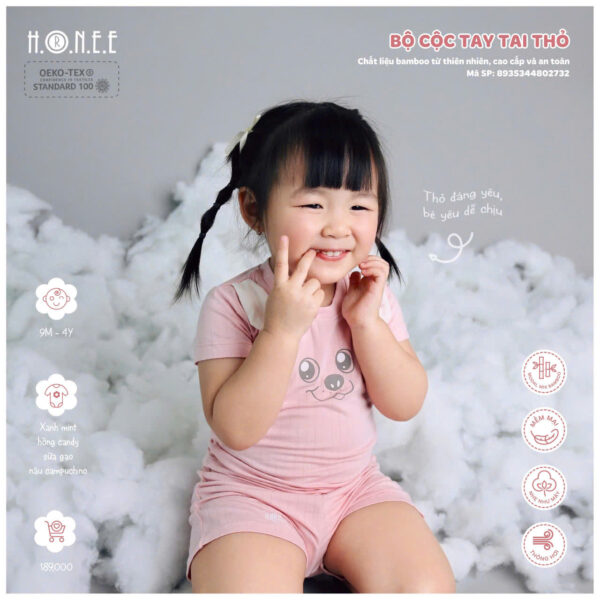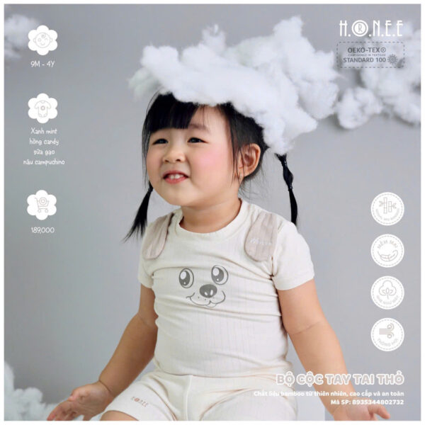 Đặc biệt, bộ đồ đạt chuẩn Oekotex 100 – tiêu chuẩn cao nhất về chất liệu vải sinh học, đảm bảo an toàn tuyệt đối cho sức khỏe của bé. Đây là một cam kết của HRNEE về chất lượng và sự an toàn, với các vật liệu không chứa các chất độc hại, hoàn toàn thân thiện với làn da mỏng manh của bé yêu. Với bộ cộc tay tai thỏ này, các bậc phụ huynh có thể yên tâm về sự an toàn và thoải mái của con, đồng thời mang lại vẻ ngoài cực kỳ đáng yêu và ngộ nghĩnh cho bé yêu của mình.