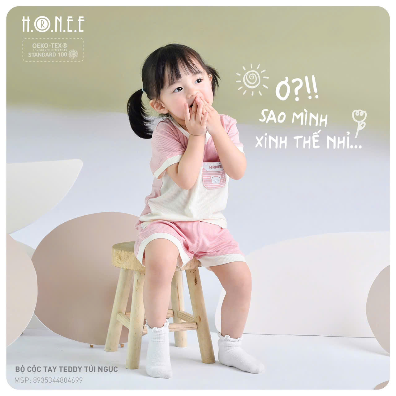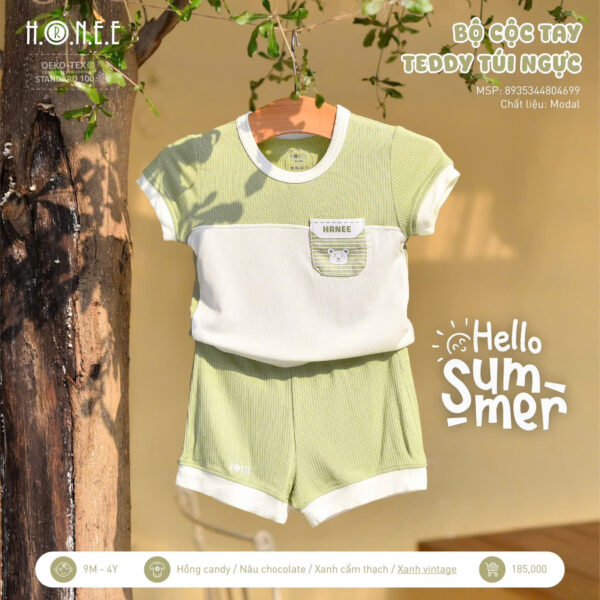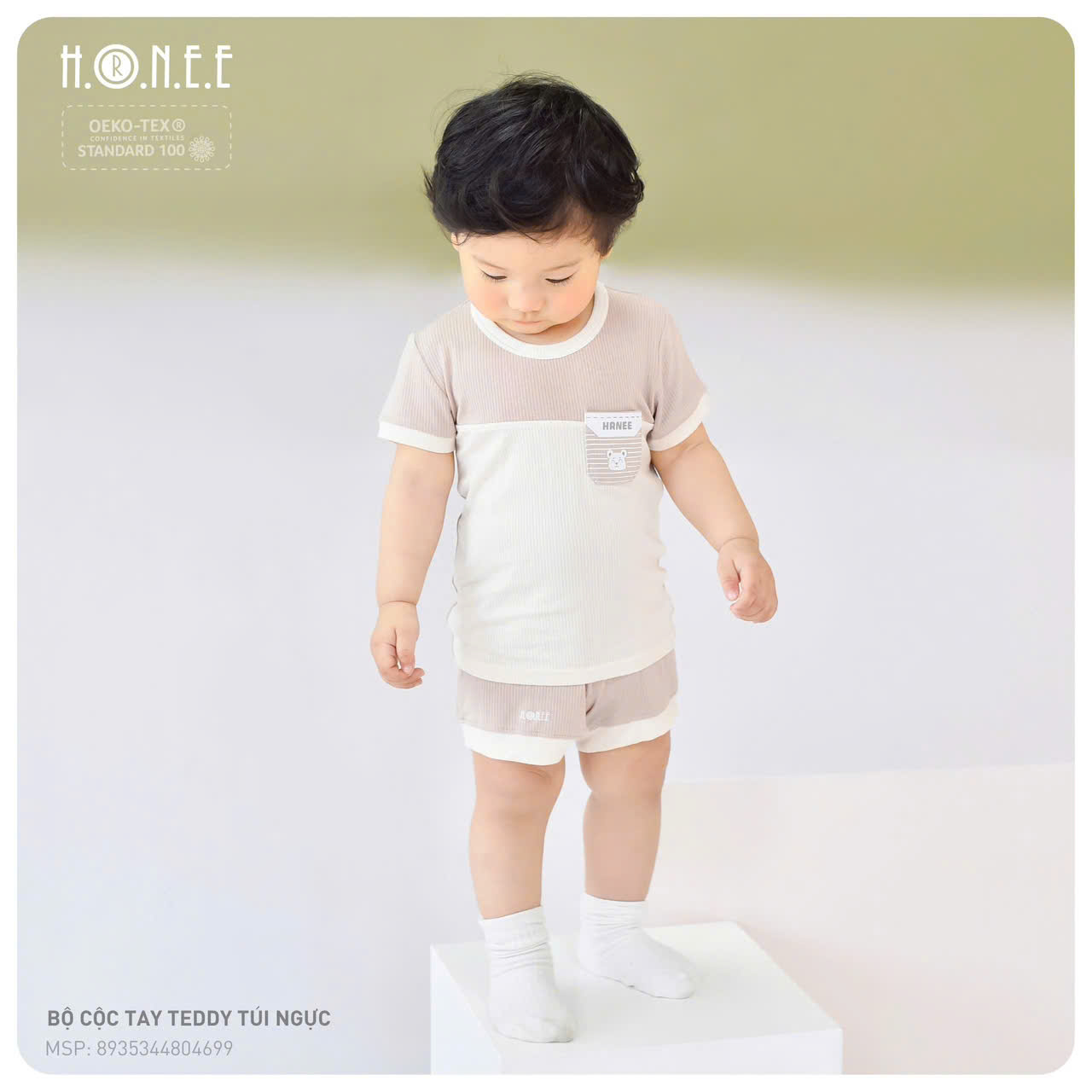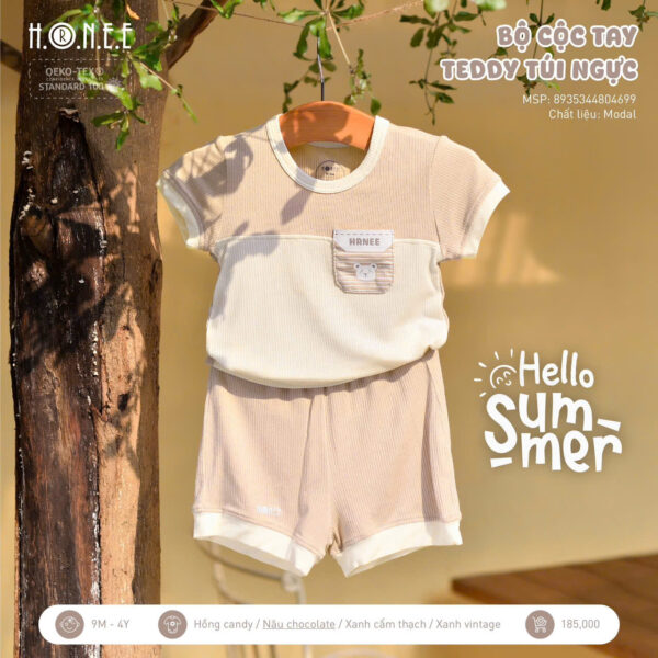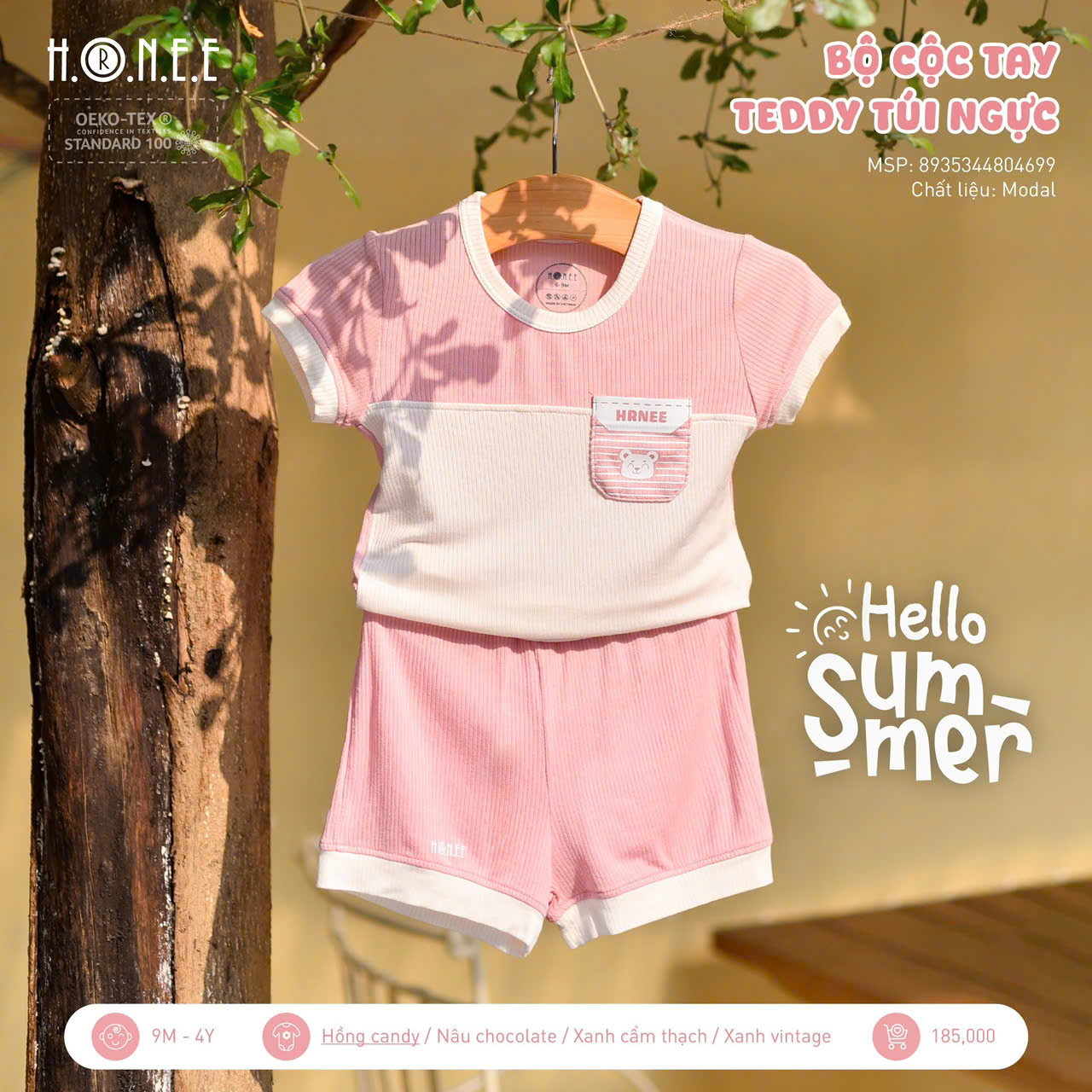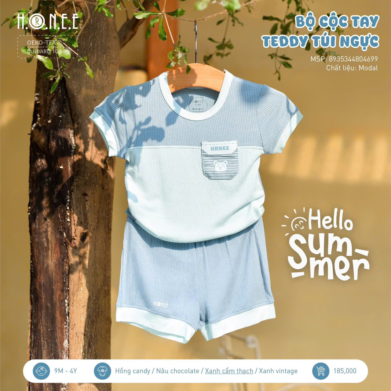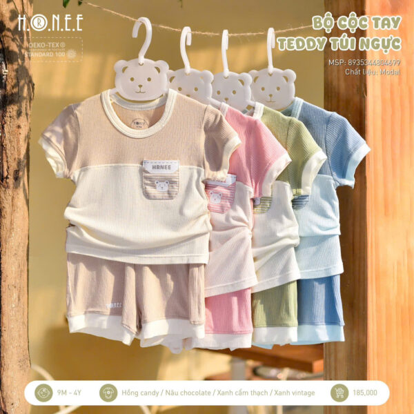 Mùa hè của bé sẽ thêm phần mát mẻ và đáng yêu hơn bao giờ hết với bộ cộc tay Teddy túi ngực – thiết kế ngọt ngào kết hợp chất liệu cao cấp, an toàn tuyệt đối cho làn da non nớt của bé yêu.