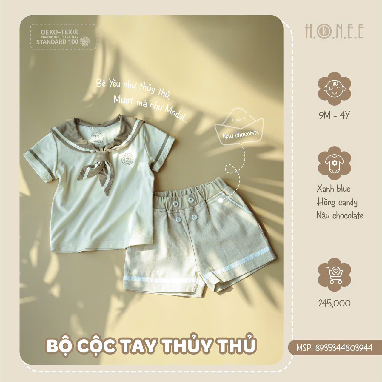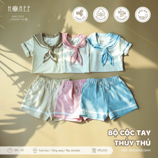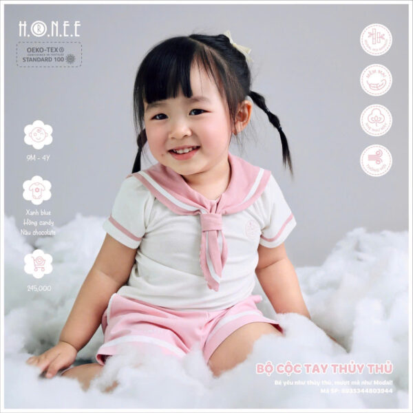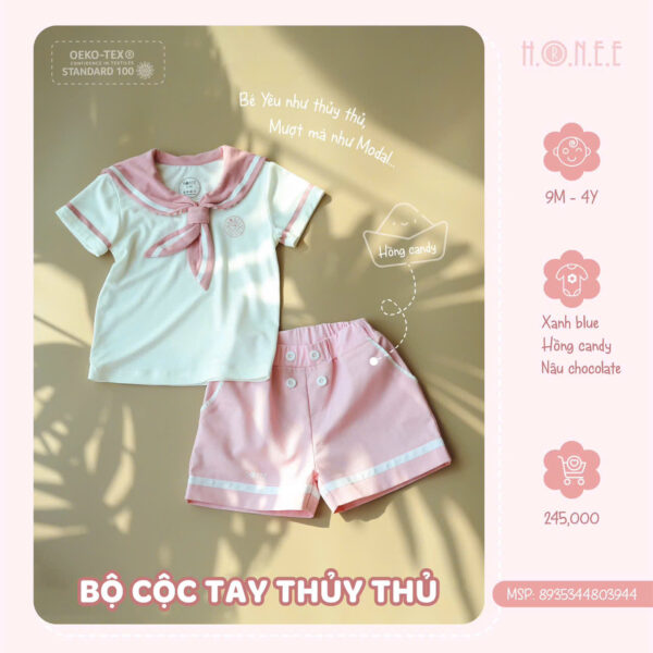 Bộ cộc tay thủy thủ cho bé xinh xắn, đáng yêu với thiết kế tinh tế, chất liệu Modal mềm mại, thoáng mát, mang lại cảm giác dễ chịu và an toàn cho làn da nhạy cảm của bé.