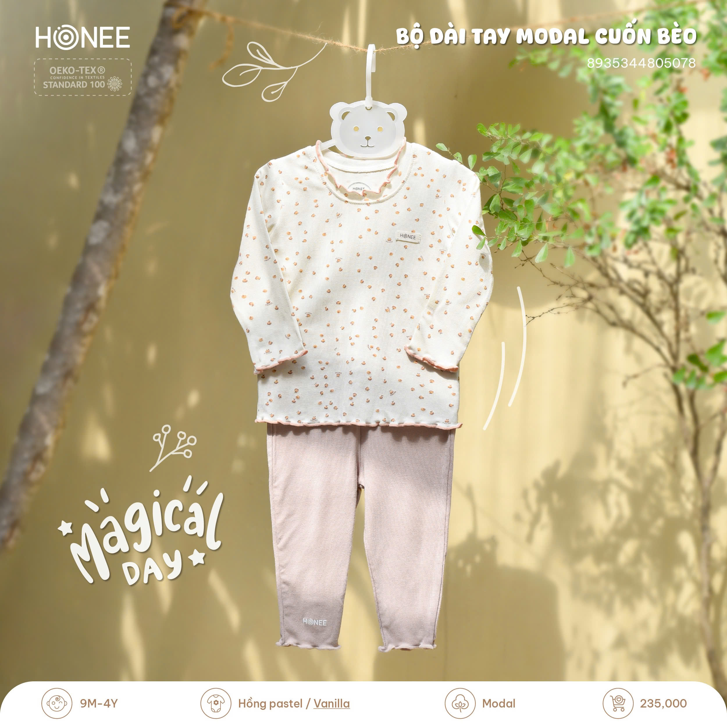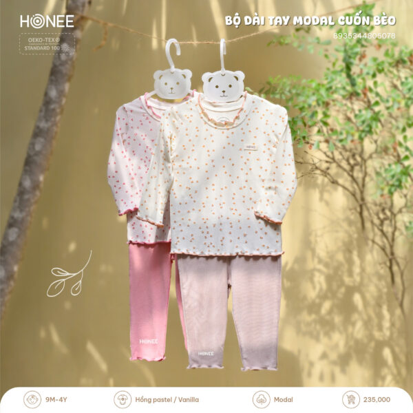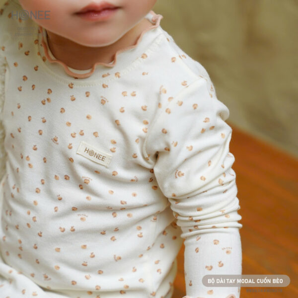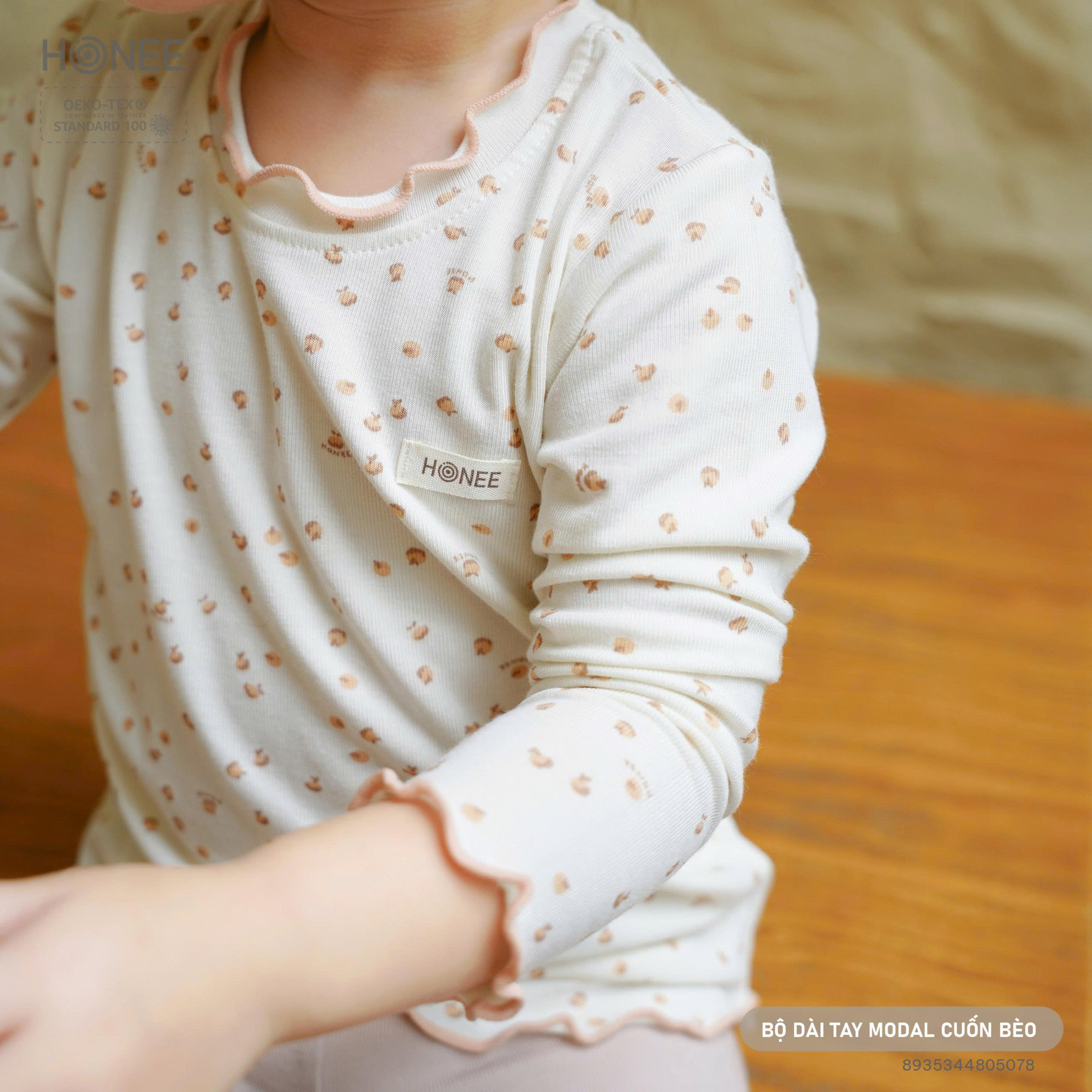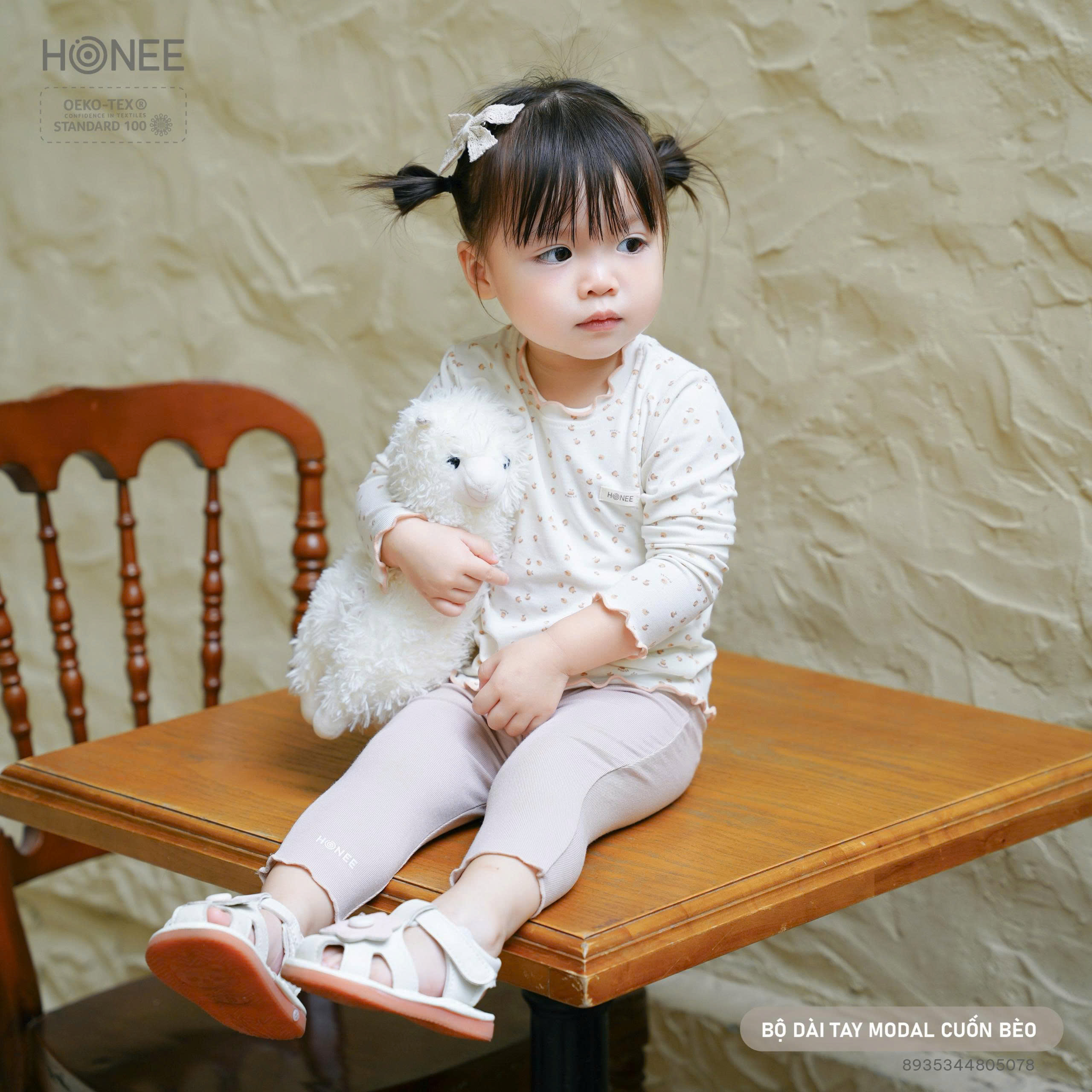 🌿 Vải Modal sinh học từ gỗ sồi mềm mịn như tơ, thoáng khí, thấm hút tốt và cực kỳ dịu nhẹ với làn da nhạy cảm của bé gái. Con mặc cả ngày vẫn luôn dễ chịu, mát mẻ và khô ráo.