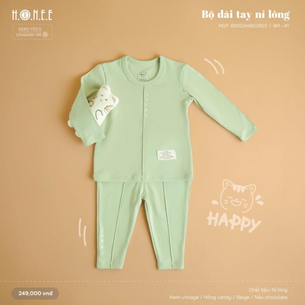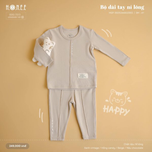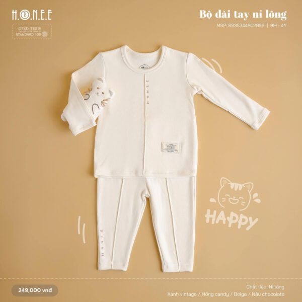 Chất liệu nỉ lông vô cùng êm ái và ấm áp với mặt trong vải được chần lớp lông cừu mỏng nhẹ, tiếp xúc mềm mại với làn da bé yêu, giúp tăng khả năng giữ nhiệt cho cơ thể tốt hơn.