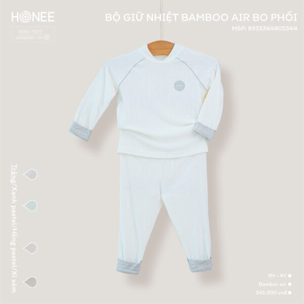 Mỗi sáng se lạnh hay những đêm nằm phòng điều hoà, mẹ chỉ mong có một bộ đồ mềm mại, giữ ấm mà vẫn nhẹ tênh cho con. Honee mang đến lựa chọn trọn vẹn ấy với bộ giữ nhiệt BAMBOO AIR thiết kế bo phối dịu dàng, giữ ấm vừa đủ mà không hề gò bó.