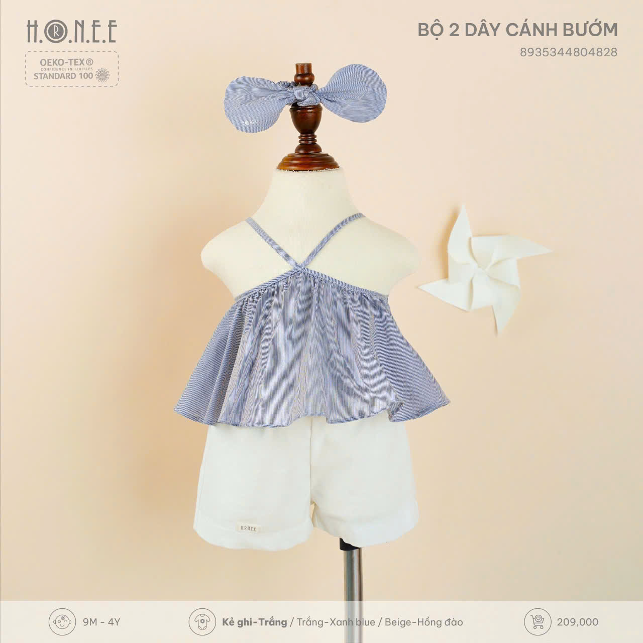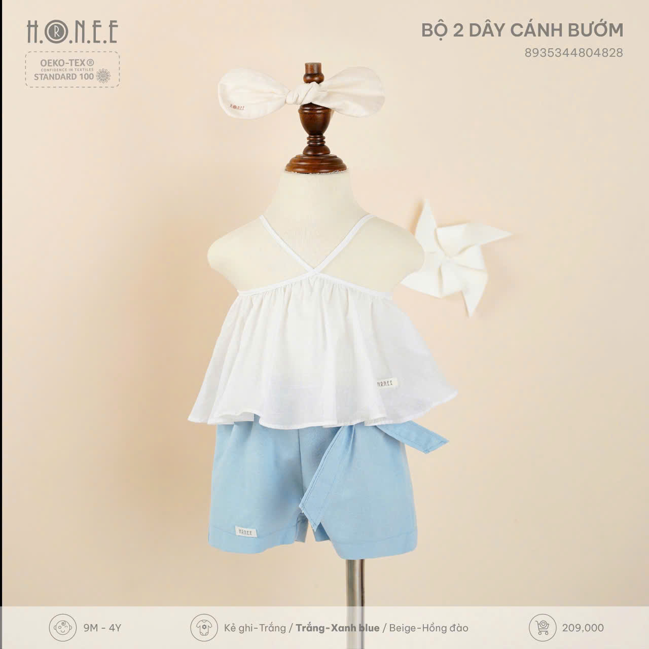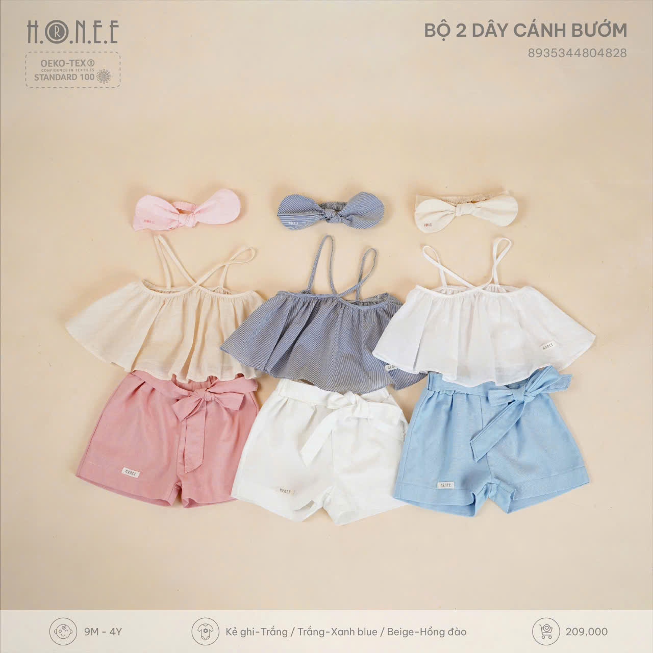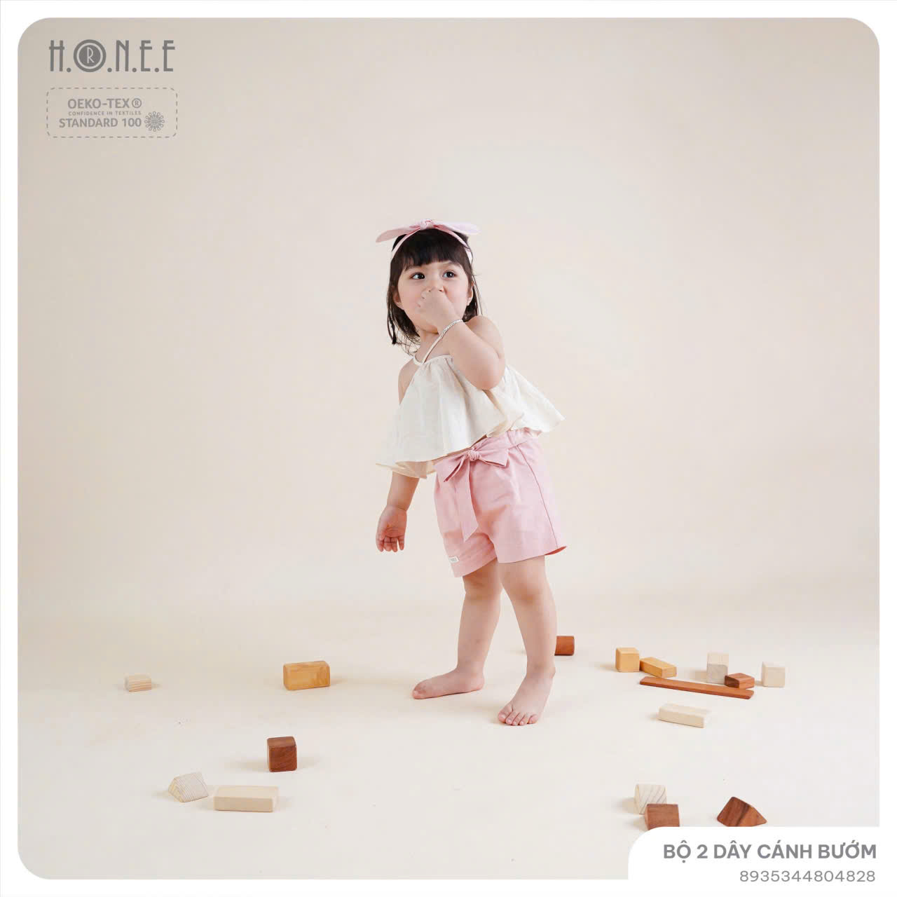Mang phong cách nhẹ nhàng, nữ tính nhưng vẫn thoải mái và mát mẻ, bộ hai dây cánh bướm quần sooc thắt nơ là lựa chọn hoàn hảo cho bé gái trong những ngày hè năng động. Thiết kế bay bổng như cánh bướm cùng chất liệu mềm mại, thân thiện với làn da non nớt sẽ giúp bé yêu vừa xinh xắn vừa dễ chịu trong từng hoạt động hàng ngày.