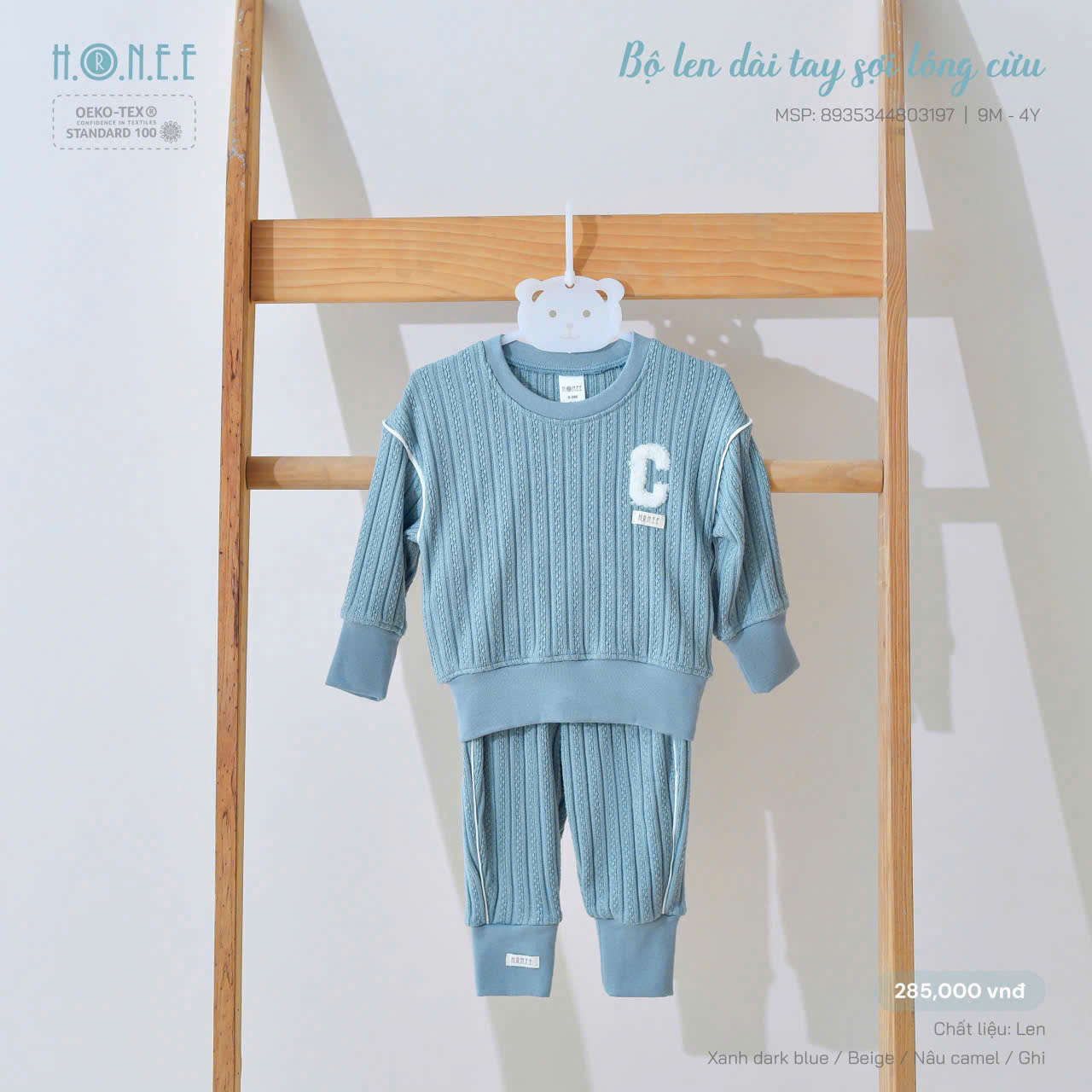 Vải len được lấy từ lông cừu Merino – giống cừu cho lông với chất lượng tốt nhất ở Úc với sợi len mỏng gấp 5 lần sợi tóc, vì vậy ba mẹ yên tâm len Merino cao cấp HRNEE hầu như không có xơ len, siêu mỏng nhẹ, mềm mại và khả năng đàn hồi tuyệt đỉnh, dẻo dai