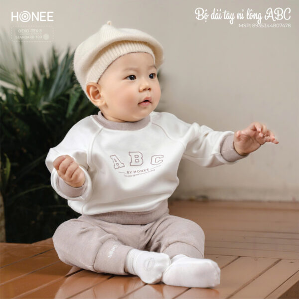 Bộ nỉ lông dài tay ABC không chỉ là trang phục giữ ấm, mà còn là sự chăm sóc êm dịu và ấm áp mà bố mẹ dành cho bé trong từng khoảnh khắc mùa đông.