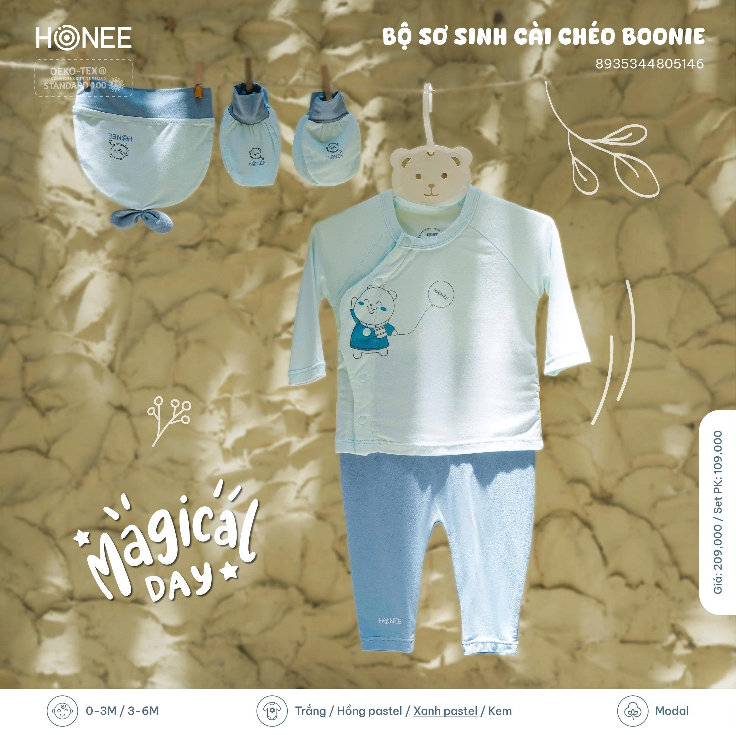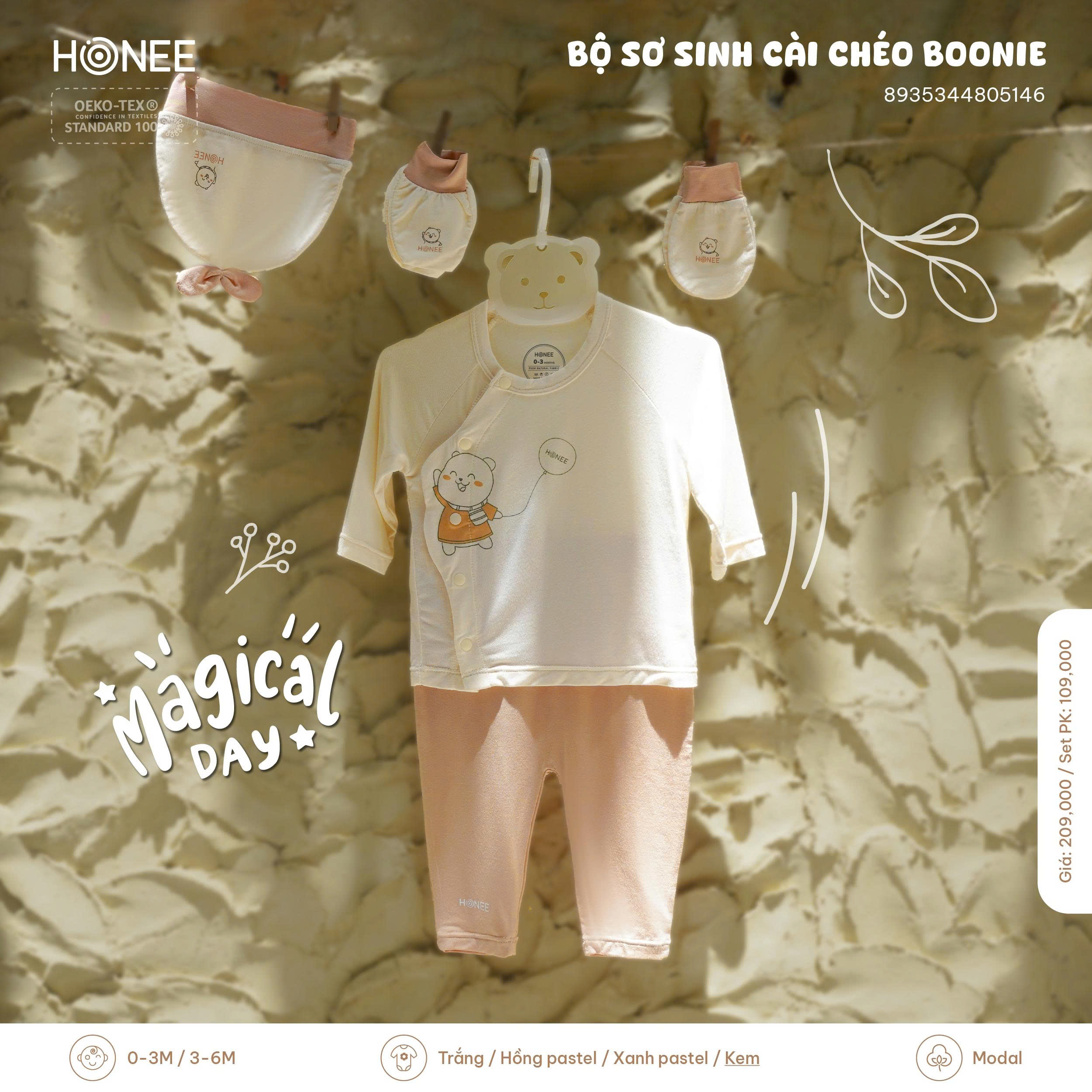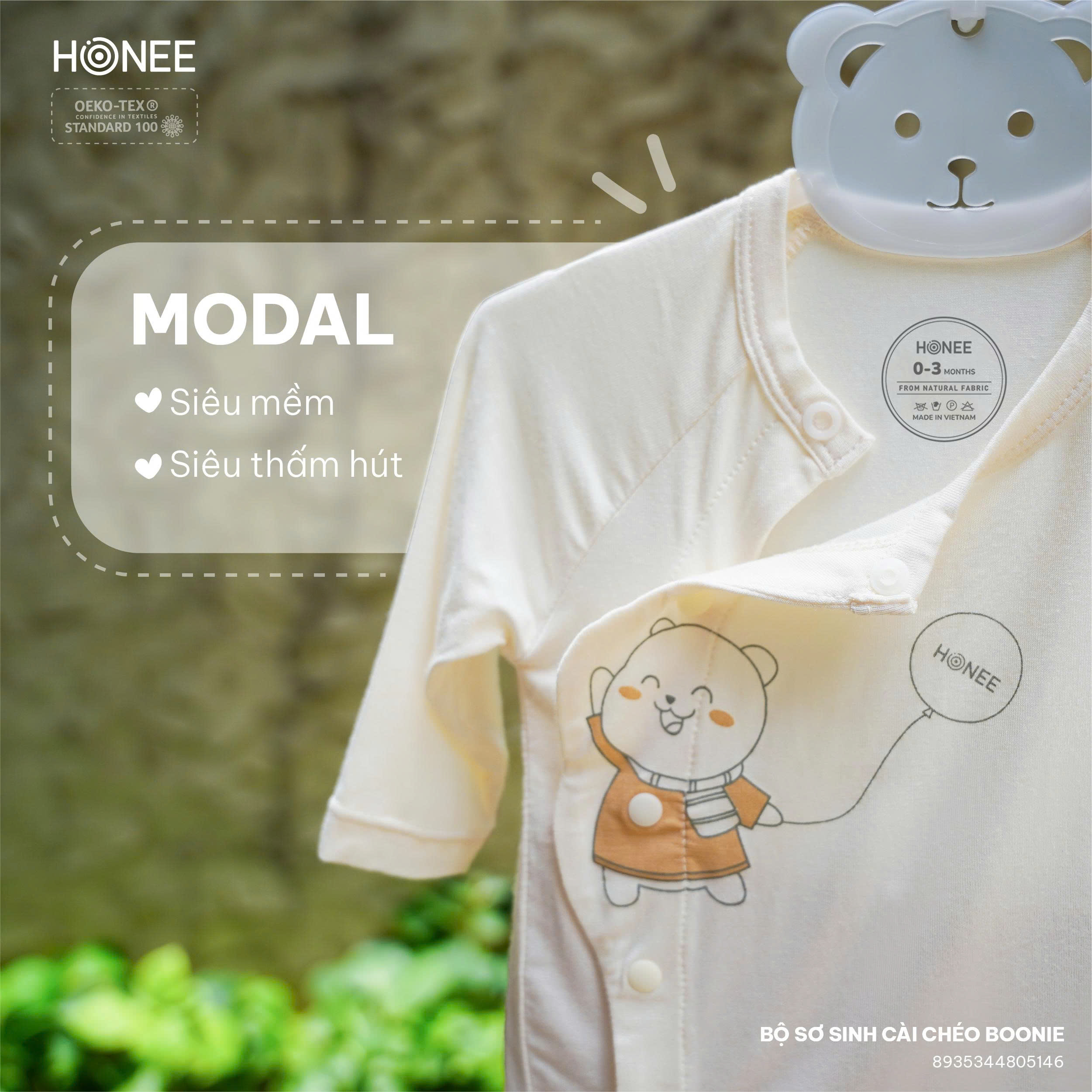 🌿 Bộ đồ được làm từ chất liệu Modal sinh học từ gỗ sồi, mềm mịn như lụa, thấm hút tốt, thoáng mát và an toàn tuyệt đối với làn da sơ sinh mỏng manh. Bé mặc cả ngày cũng vẫn thấy dễ chịu, nhẹ nhàng, không cọ da.