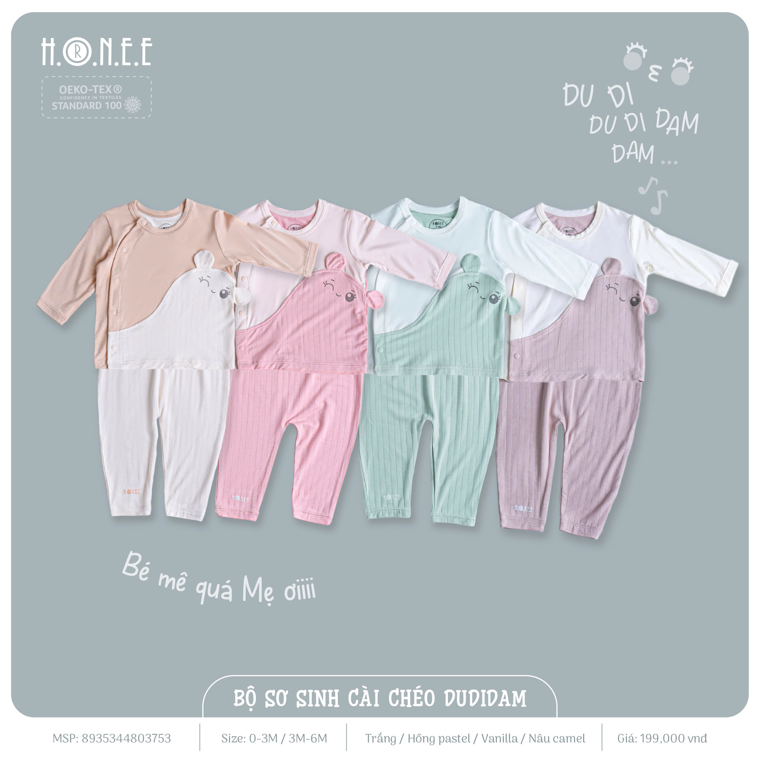 Bộ sơ sinh cài chéo Dudidam là sản phẩm đặc biệt được HRNEE sáng tạo lấy cảm hứng từ bài hát trẻ thơ ngộ nghĩnh “Dudidam”. Với thiết kế hình in đáng yêu, dễ thương, bộ đồ sẽ là người bạn đồng hành tuyệt vời cho bé yêu trong những ngày hè oi ả. Chất liệu vải bamboo siêu thấm, kết hợp với vải mềm mại, mát mẻ, giúp thấm hút mồ hôi cực kỳ tốt, giữ cho bé luôn khô thoáng và thoải mái.