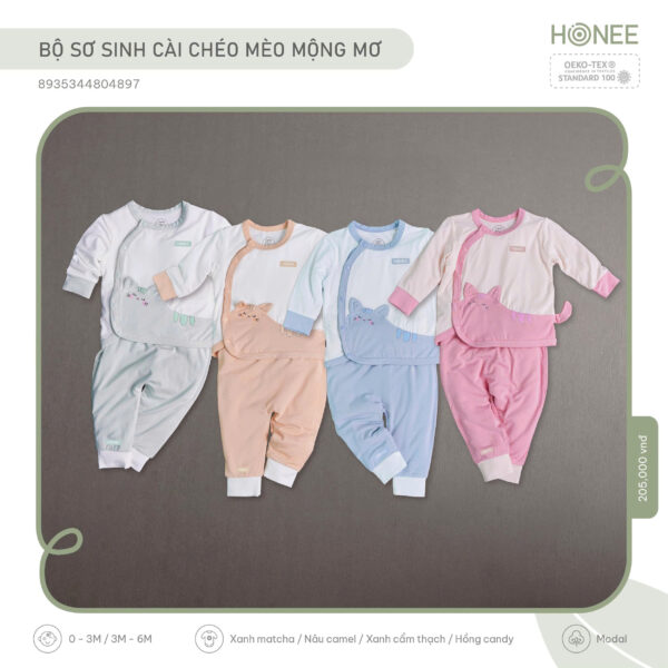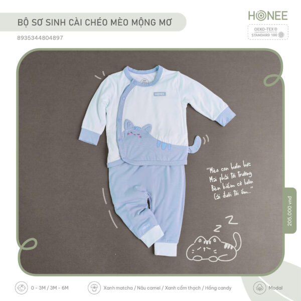 🐱 BỘ SƠ SINH CÀI CHÉO MÈO MỘNG MƠ – CHIẾC ÔM NHỎ CHO NHỮNG NGÀY ĐẦU ĐỜI 🌙