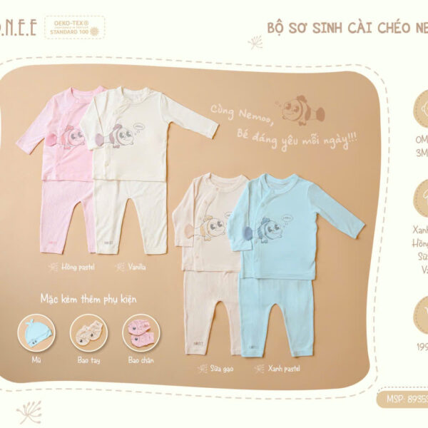 Bộ sơ sinh cài chéo Nemo là sản phẩm lý tưởng dành cho các bé yêu trong những ngày đầu đời, với thiết kế vừa vặn, dễ sử dụng và đảm bảo sự thoải mái tối đa cho bé. Bộ đồ này không chỉ mang lại vẻ đẹp dịu dàng, dễ thương mà còn sở hữu nhiều tính năng vượt trội giúp chăm sóc sức khỏe cho bé yêu một cách toàn diện.