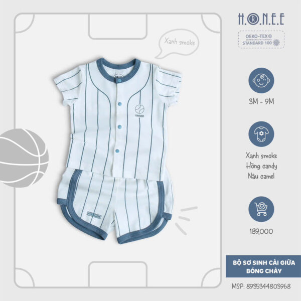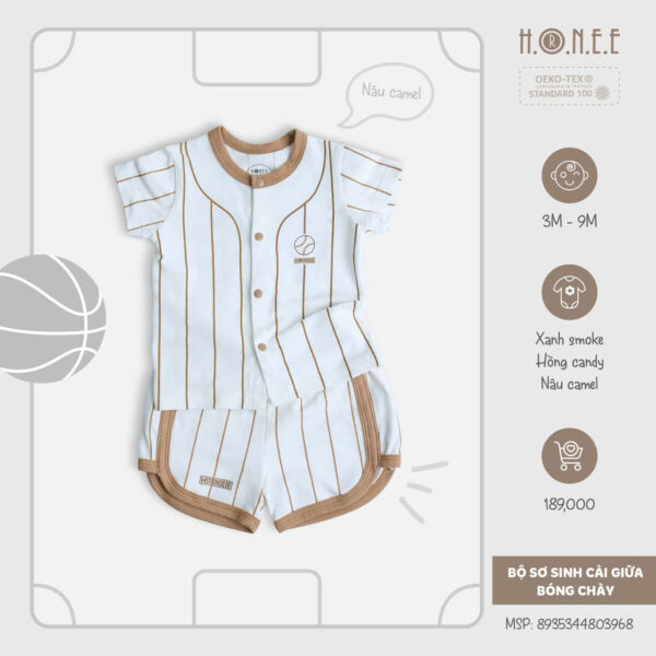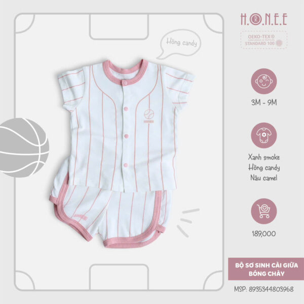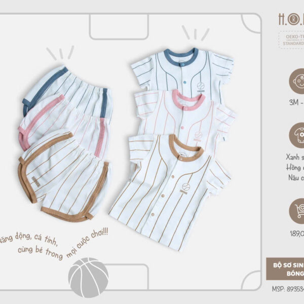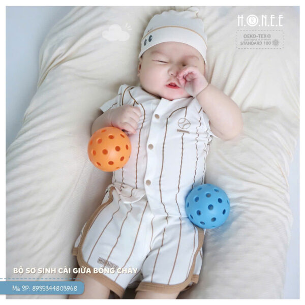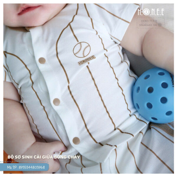 Bộ sơ sinh cài giữa bóng chày không chỉ chú trọng đến sự thoải mái mà còn có thiết kế tinh tế, dễ thương, phù hợp cho các bé sơ sinh từ những ngày đầu. Màu sắc nhẹ nhàng, dễ thương, dễ phối hợp với các phụ kiện khác, khiến bé luôn trông thật xinh xắn và đáng yêu trong bộ đồ này.