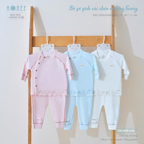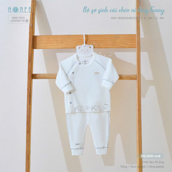 Bộ sơ sinh cài chéo nỉ lông Funny với thiết kế họa tiết gia đình Gấu đáng yêu, ngộ nghĩnh. Dáng cài chéo & cài giữa signature, vô cùng tiện lợi cho ba mẹ thay/mặc đồ cho em bé.