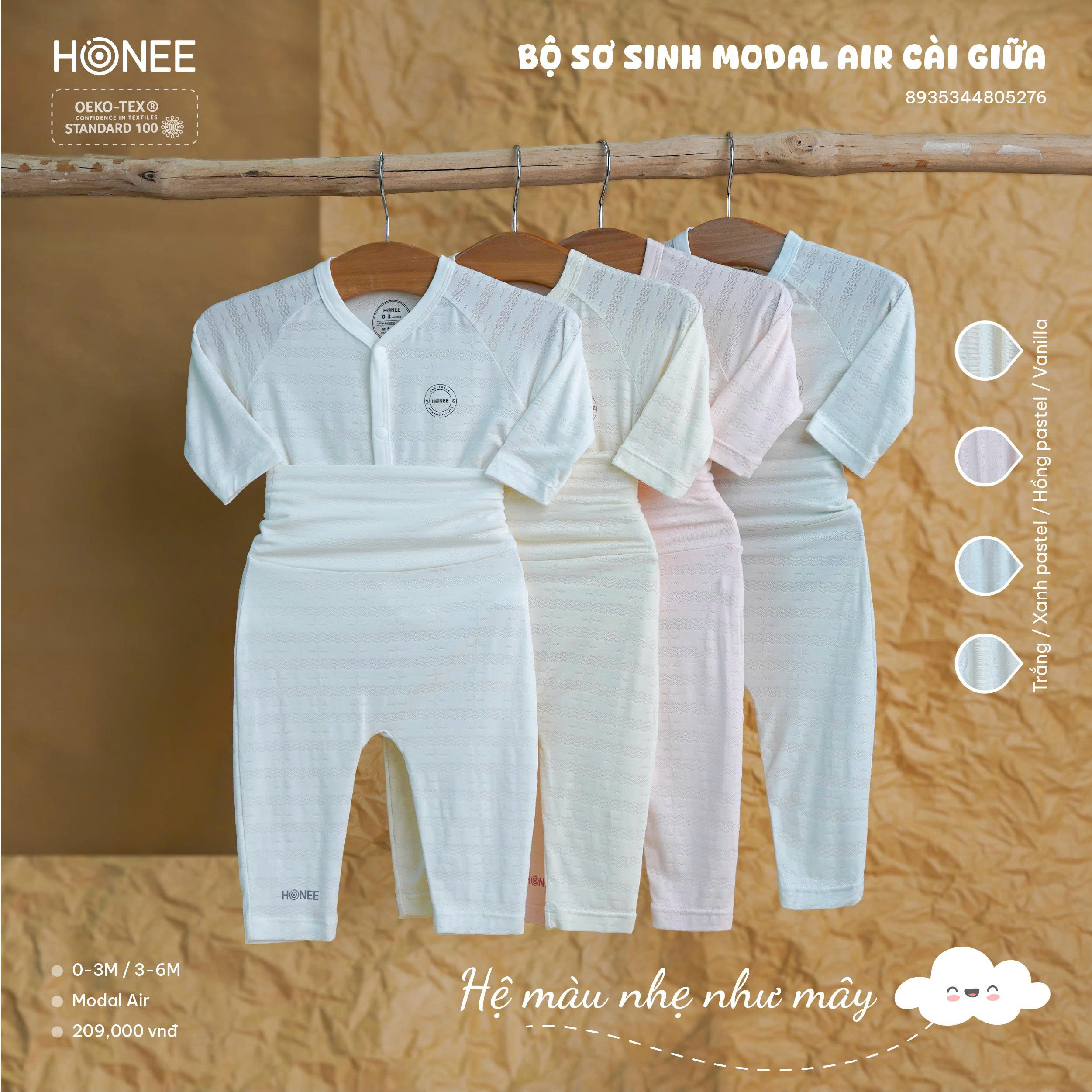 Bộ sơ sinh Modal Air cài giữa – Nhẹ tênh như mây, ôm trọn những điều tốt đẹp mẹ luôn mong dành cho con.