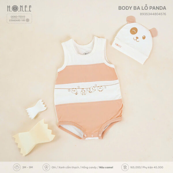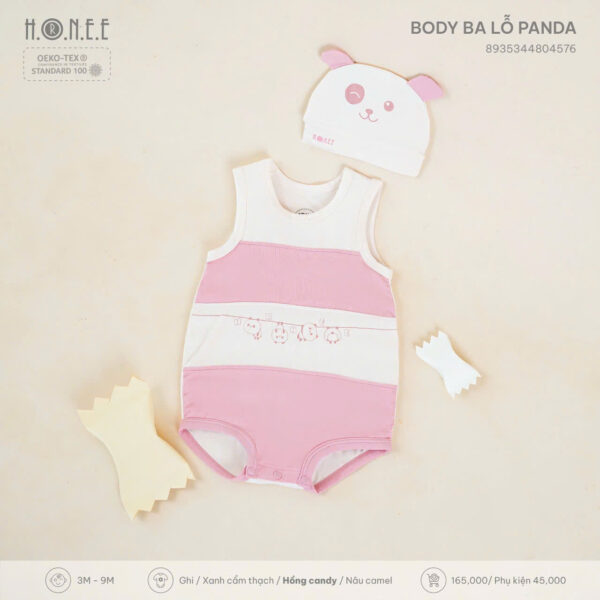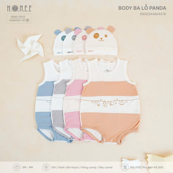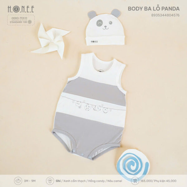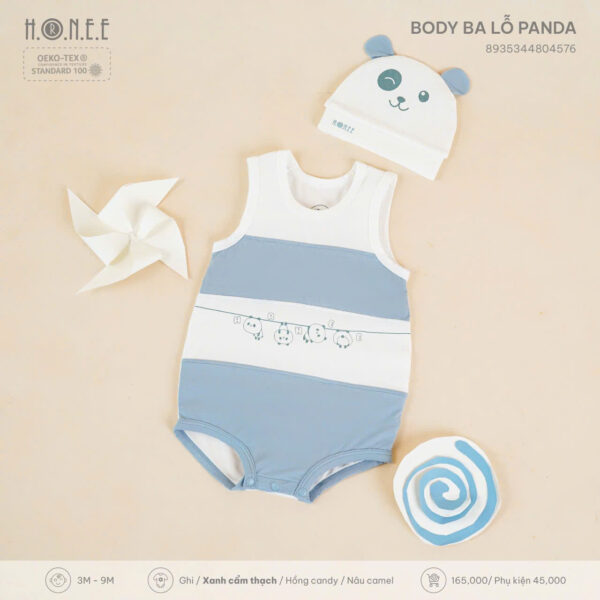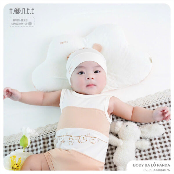 Vào những ngày hè nóng nực, điều mẹ quan tâm nhất là làm sao để bé luôn cảm thấy thoải mái, mát mẻ mà vẫn giữ được vẻ dễ thương và gọn gàng. Hiểu được điều đó, H.O.N.E.E mang đến thiết kế Body ba lỗ Panda – giải pháp lý tưởng cho bé yêu từ 3 đến 9 tháng tuổi.
