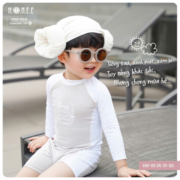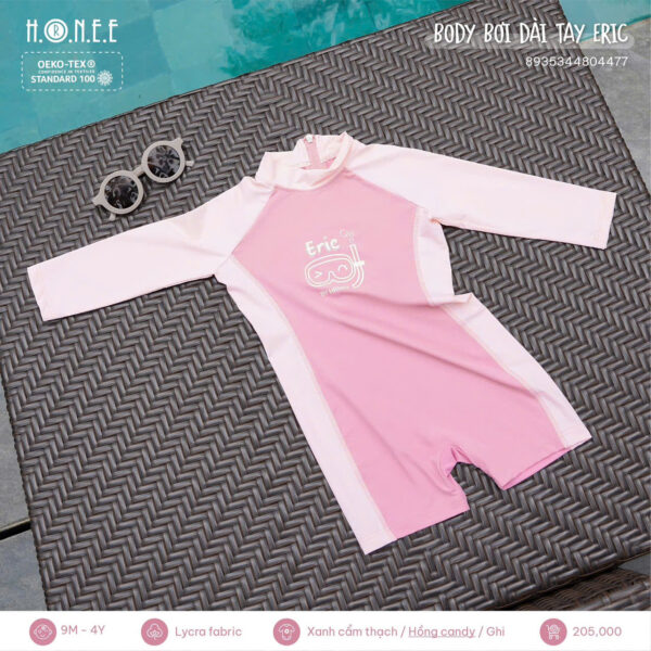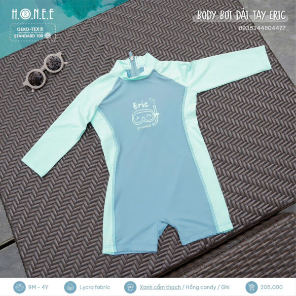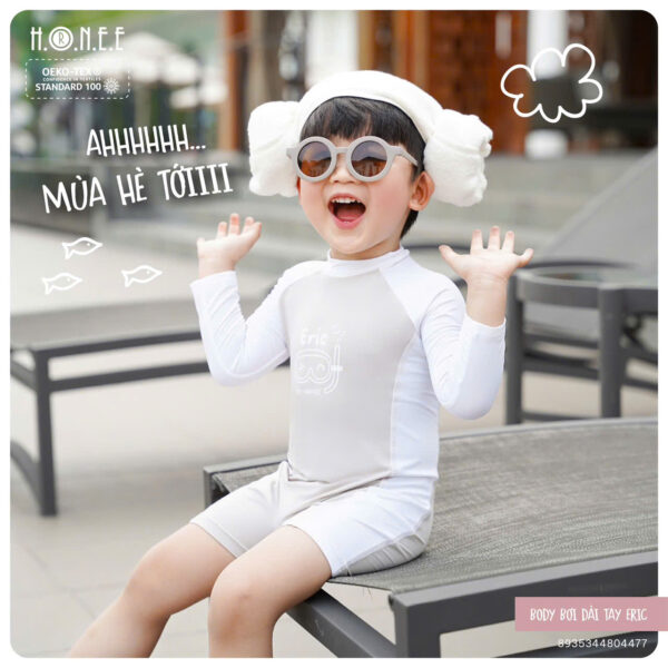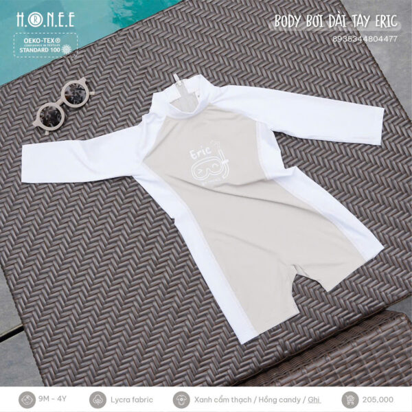Body bơi dài tay Eric là lựa chọn lý tưởng cho các bé yêu thích hoạt động dưới nước trong mùa hè. Với thiết kế liền thân dài tay, sản phẩm không chỉ giúp bé bảo vệ làn da khỏi tia UV và gió biển, mà còn đảm bảo sự thoải mái tuyệt đối khi vận động.