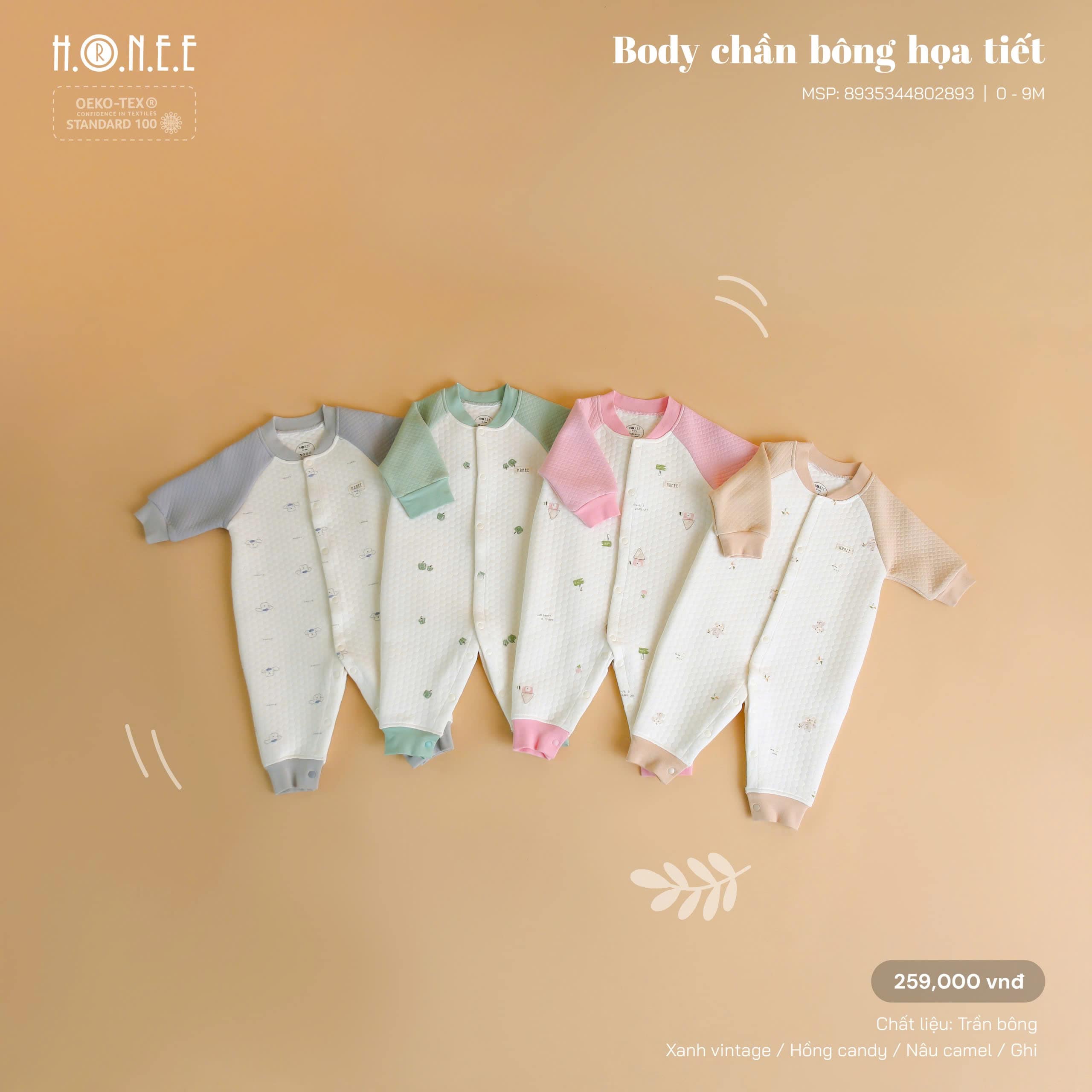 Đảm bảo giữ ấm bé yêu một cách tối đa nhất, khiến con cảm nhận được sự êm ái như khi còn ở trong bụng mẹ, body dài tay chần bông với những họa tiết vô cùng đáng yêu, thiết kế sử dụng cúc bấm cao cấp, mượt mà, chỉ mút cao cấp vô cùng an toàn đối với sức khỏe của trẻ nhỏ