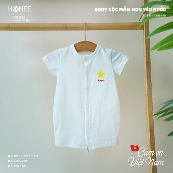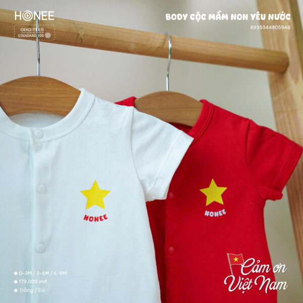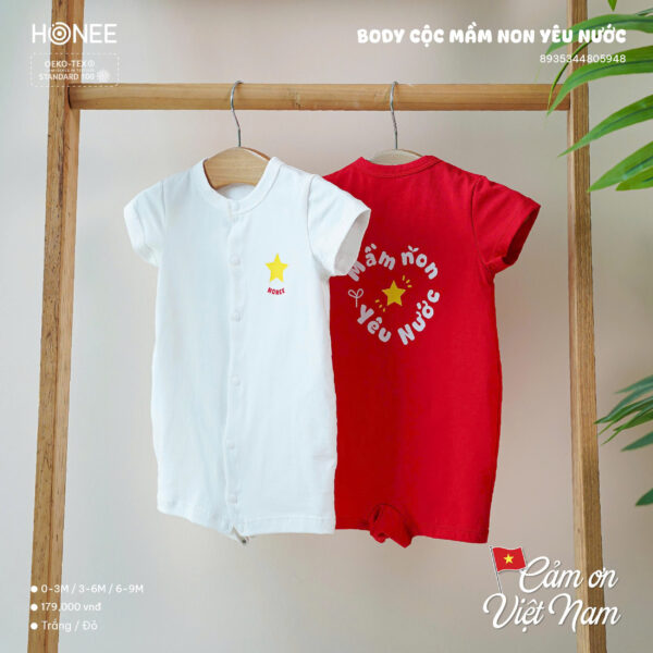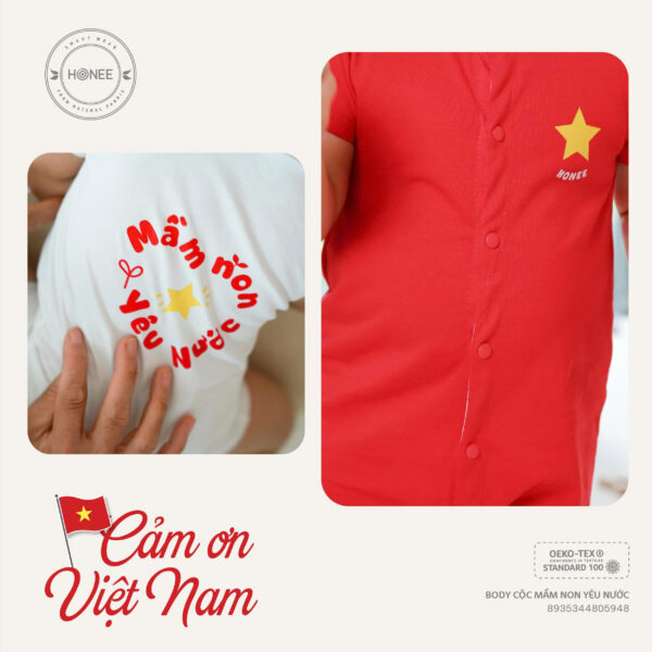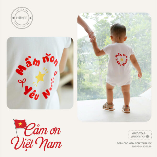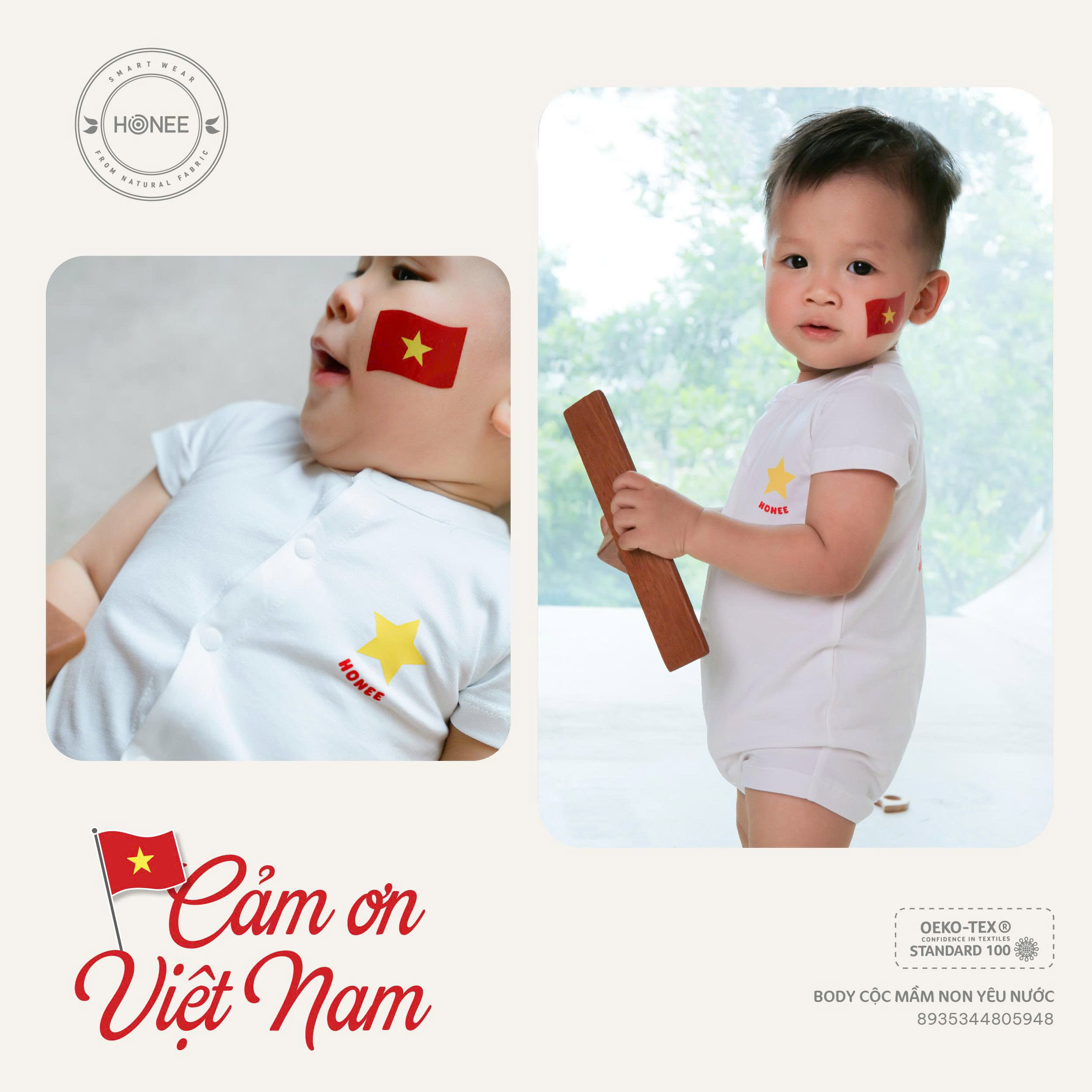 Chiếc body nhỏ xinh không chỉ để bé thoải mái vận động, mà còn là cách mẹ gieo vào con hạt mầm đầu tiên về niềm tự hào dân tộc.
