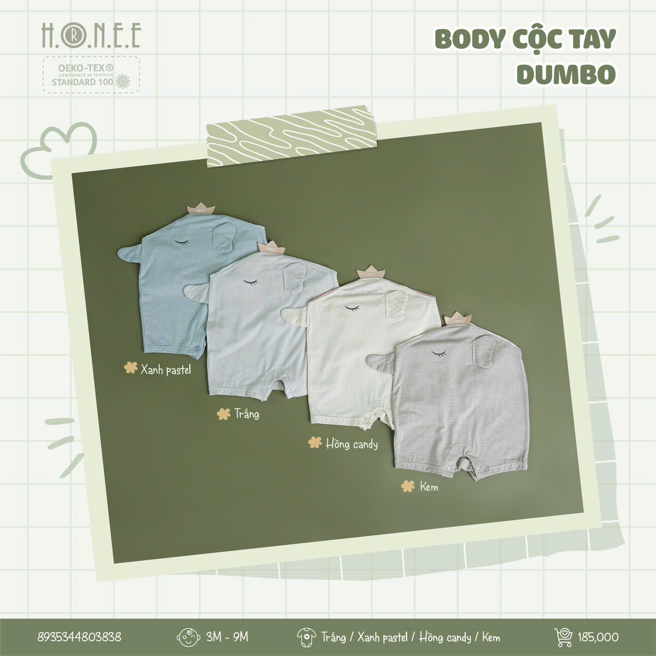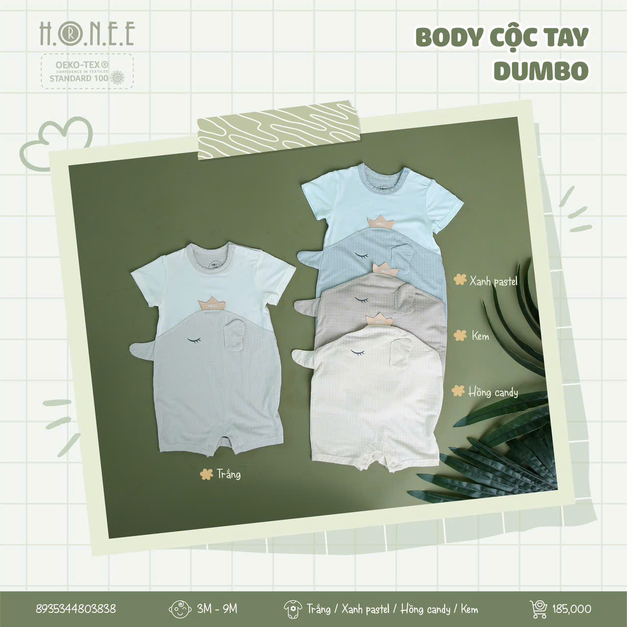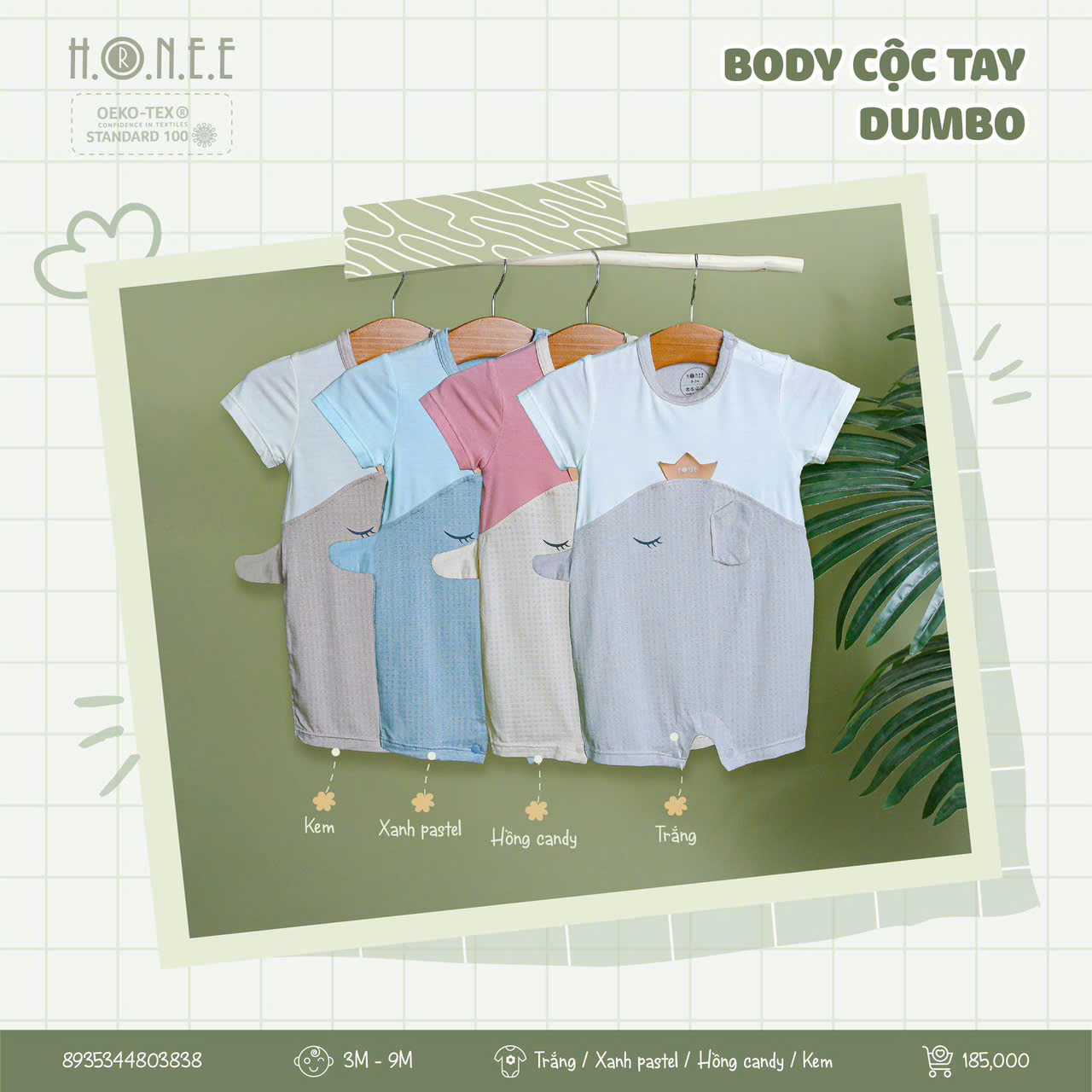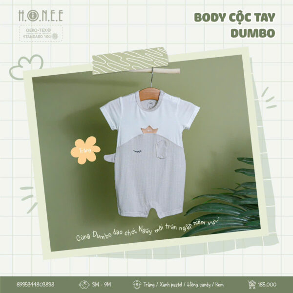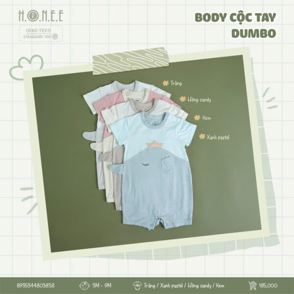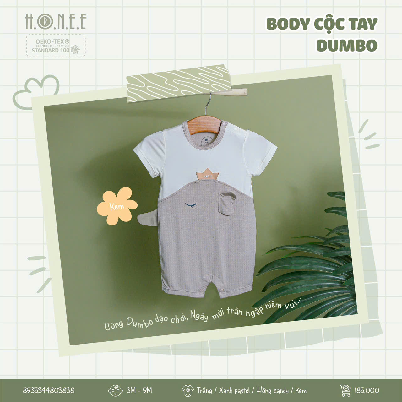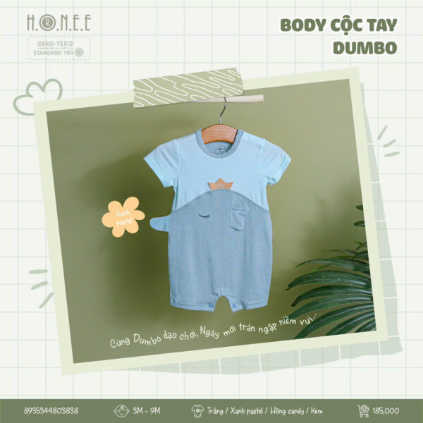 BODY CỘC TAY DUMBO là lựa chọn hoàn hảo để chăm sóc cho bé yêu trong những năm tháng đầu đời, mang lại sự an tâm tuyệt đối cho các bậc phụ huynh.