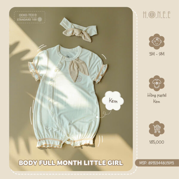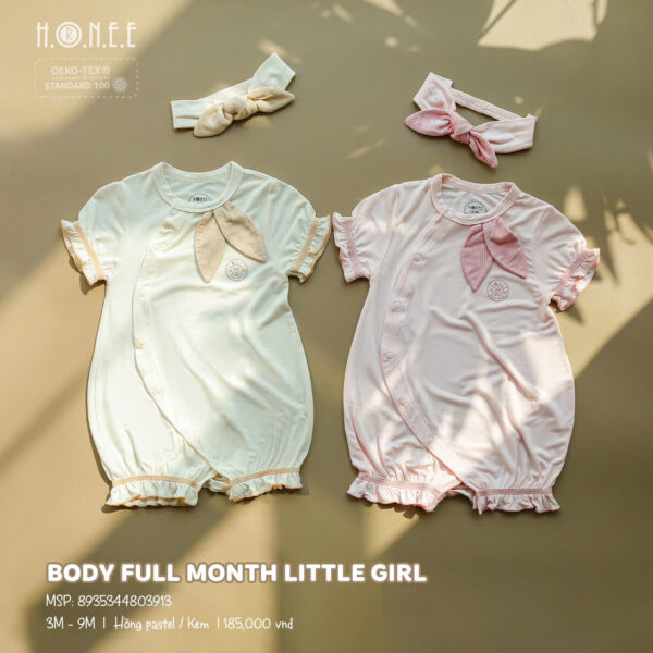 Chất liệu vải mềm mại và nhẹ nhàng, đảm bảo mang lại sự thoải mái tối đa cho bé, không gây kích ứng da, rất phù hợp với làn da nhạy cảm của bé yêu. Body Full Month Little Girl giúp bé luôn thoải mái, dễ chịu khi vui chơi, vận động hay nghỉ ngơi. Đây là lựa chọn lý tưởng cho các bậc phụ huynh muốn bé yêu luôn xinh xắn, đáng yêu và thoải mái trong mỗi ngày.