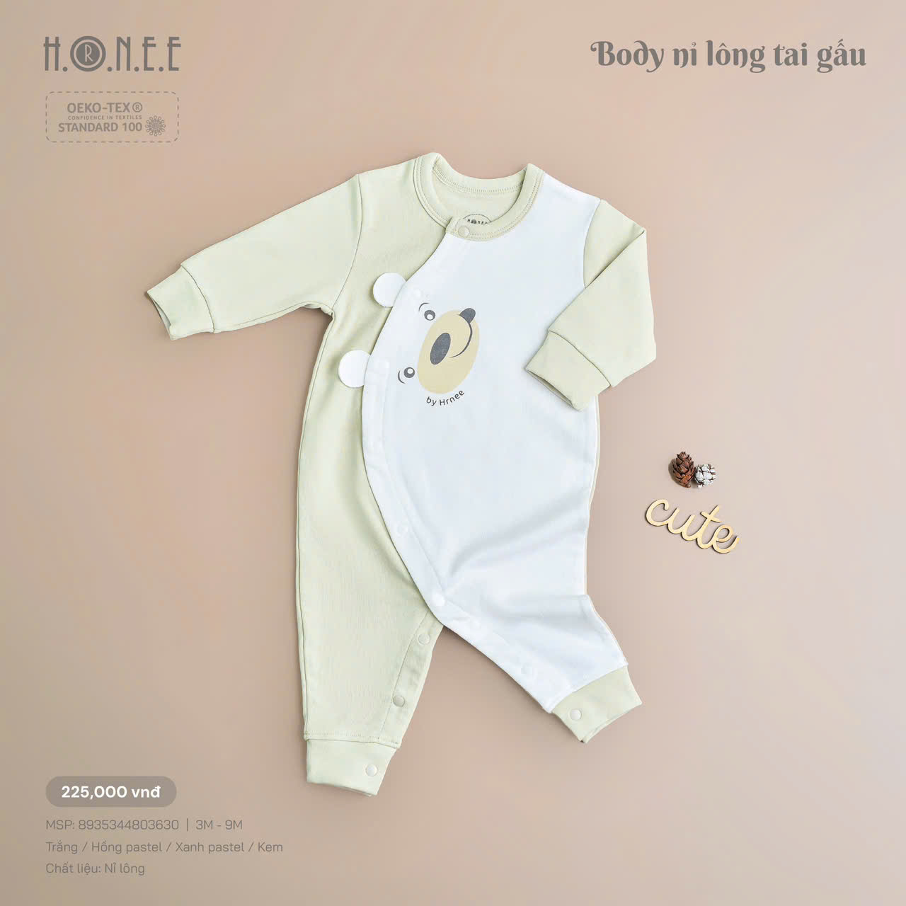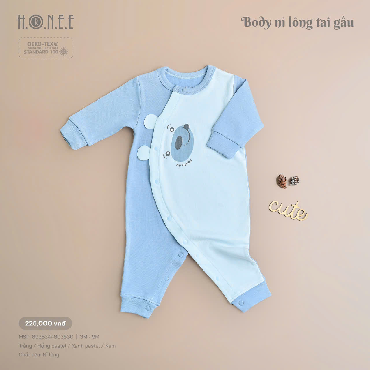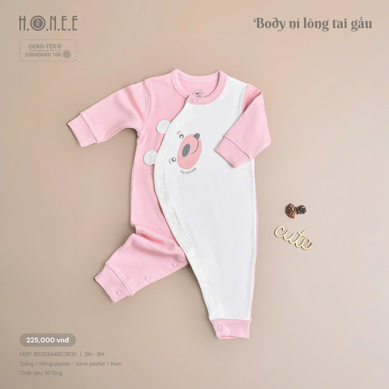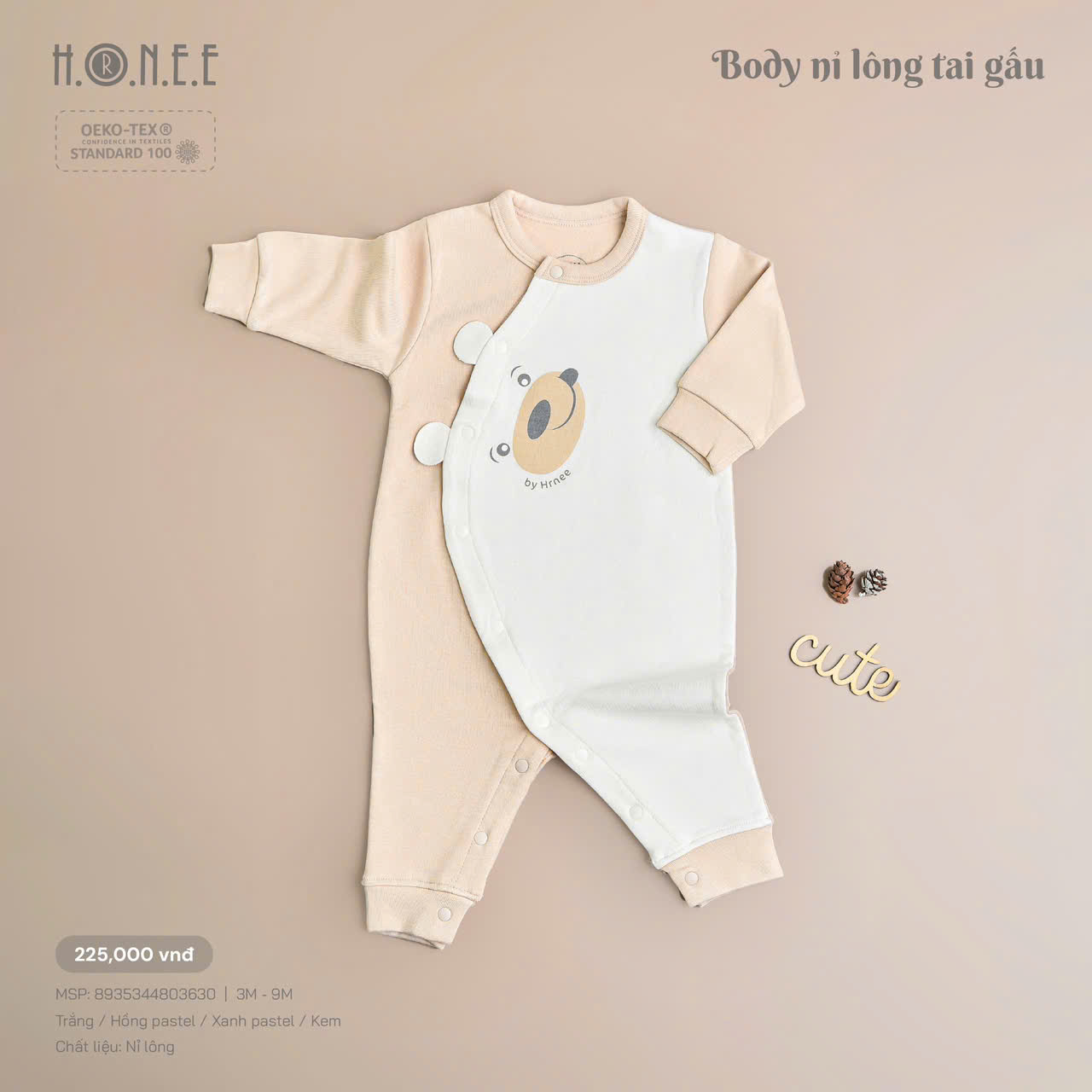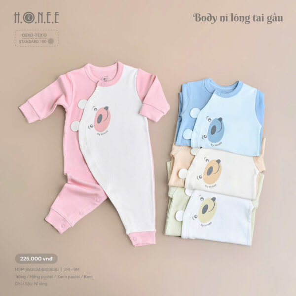 Thiết kế mềm mại, màu sắc tươi sáng và chất liệu nỉ lông thân thiện với làn da nhạy cảm, giúp bé luôn thoải mái trong từng cử động. Bất kể là những lúc vui chơi hay chìm vào giấc ngủ êm ái, chú Gấu nhỏ vẫn sẽ là người bạn ấm áp đồng hành bên bé