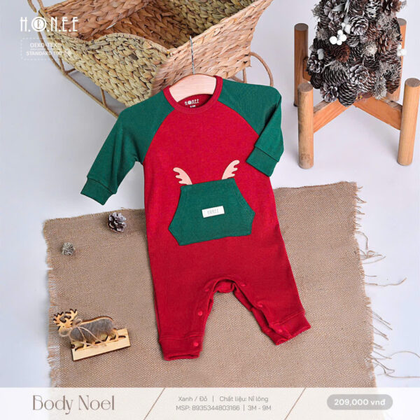 Thiết kế tỉ mỉ trong từng đường kim mũi chỉ như lời chúc phúc đầu đời, mang đến sự an lành và hạnh phúc cho bé trong mùa lễ hội. Hãy để bộ body Noel là sự chạm nhẹ của yêu thương, giữ ấm cho bé trong những ngày đông và làm sáng lên từng khoảnh khắc ngọt ngào bên gia đình