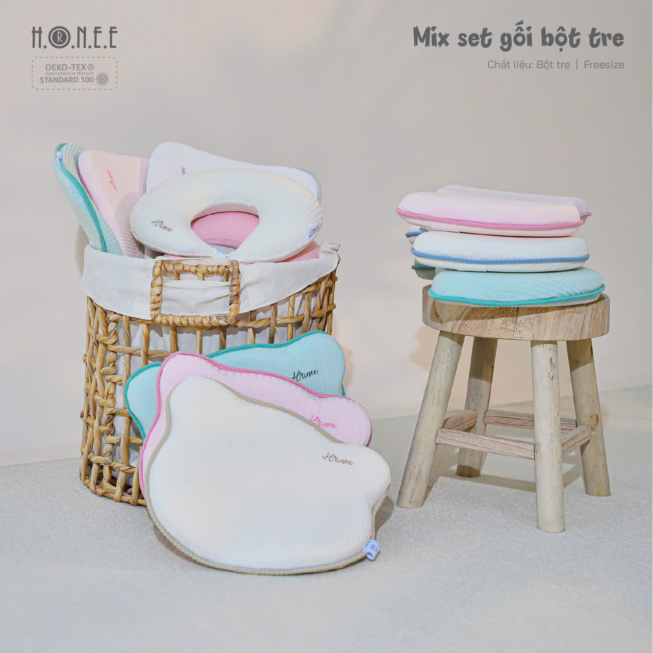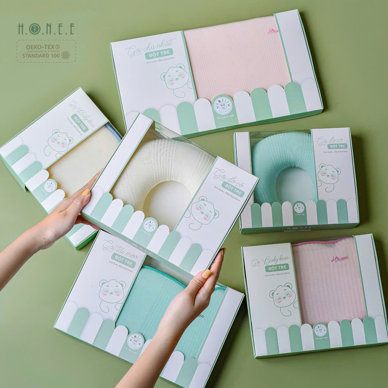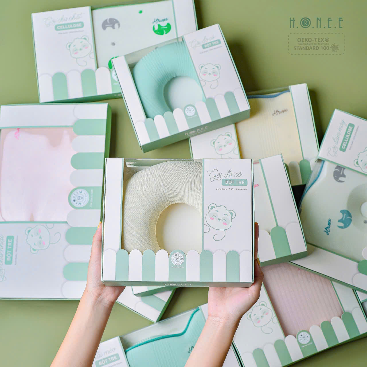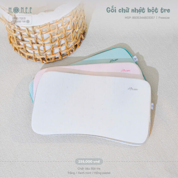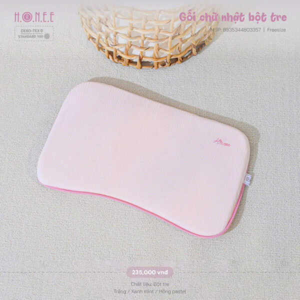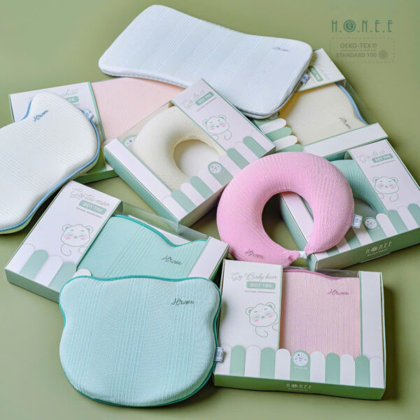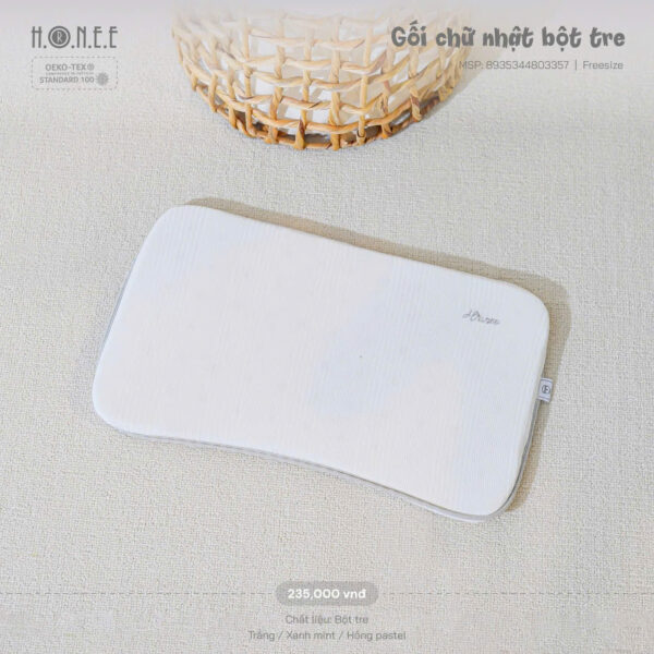 Chiều cao vừa phải, được thiết kế theo hướng giảm độ cao mặt gối ôm sát vùng sau đầu giúp định hình hộp sọ, chống méo đầu, bẹp đầu, lệch cổ, giúp bé có giấc ngủ sâu hơn