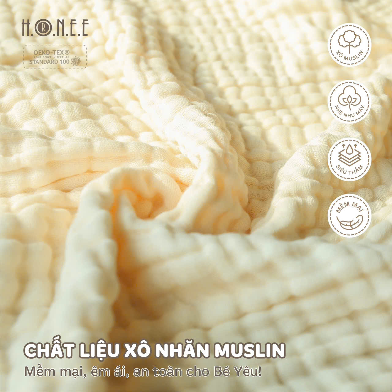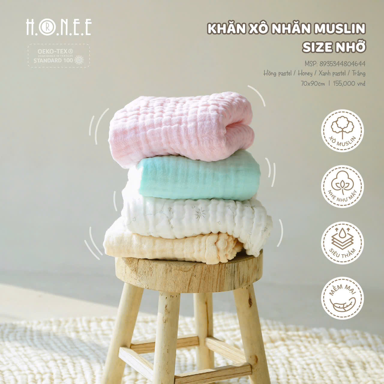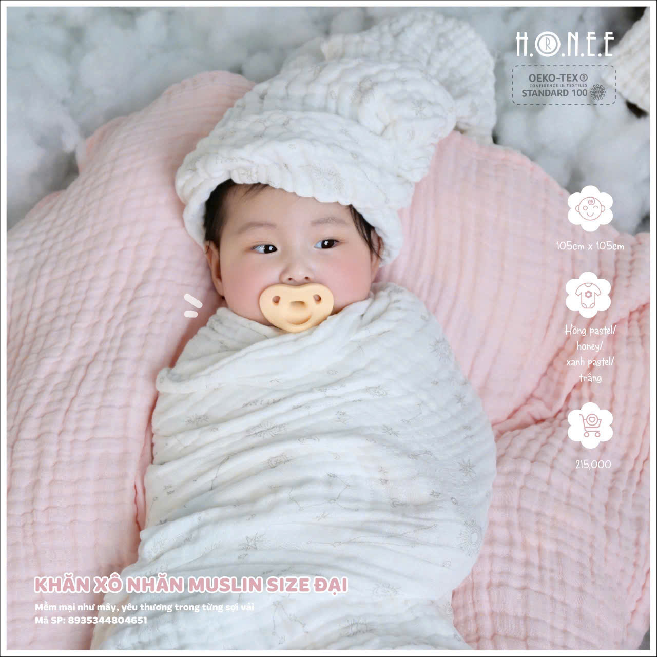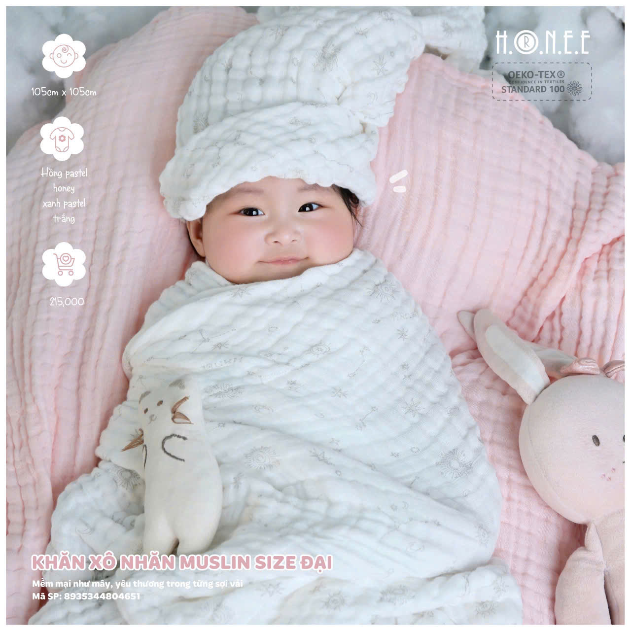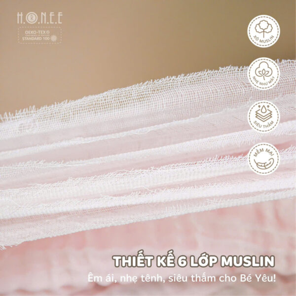 Với kích thước đại 105x105cm, khăn rất linh hoạt và có thể sử dụng cho nhiều mục đích khác nhau, từ việc lau mặt bé, lau mồ hôi sau khi bé ngủ đến việc quấn bé sau khi tắm, giúp bé cảm thấy ấm áp và dễ chịu. Đặc biệt, khăn cũng rất hữu ích để bảo vệ bé khỏi các yếu tố môi trường khi ra ngoài, giữ cho bé luôn sạch sẽ và an toàn.