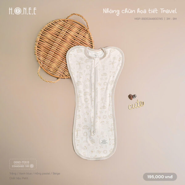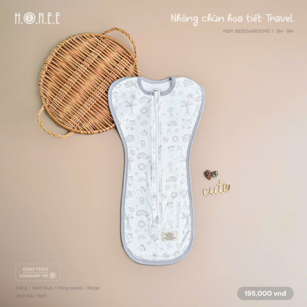 “Nhộng Chũn Họa Tiết Travel” mang đến cảm giác mới mẻ và đầy hứng khởi cho bé, lấy cảm hứng từ sự tò mò của bé yêu lần đầu đến với thế giới xinh đẹp này, như một chuyến phiêu lưu trong thế giới riêng của mình.