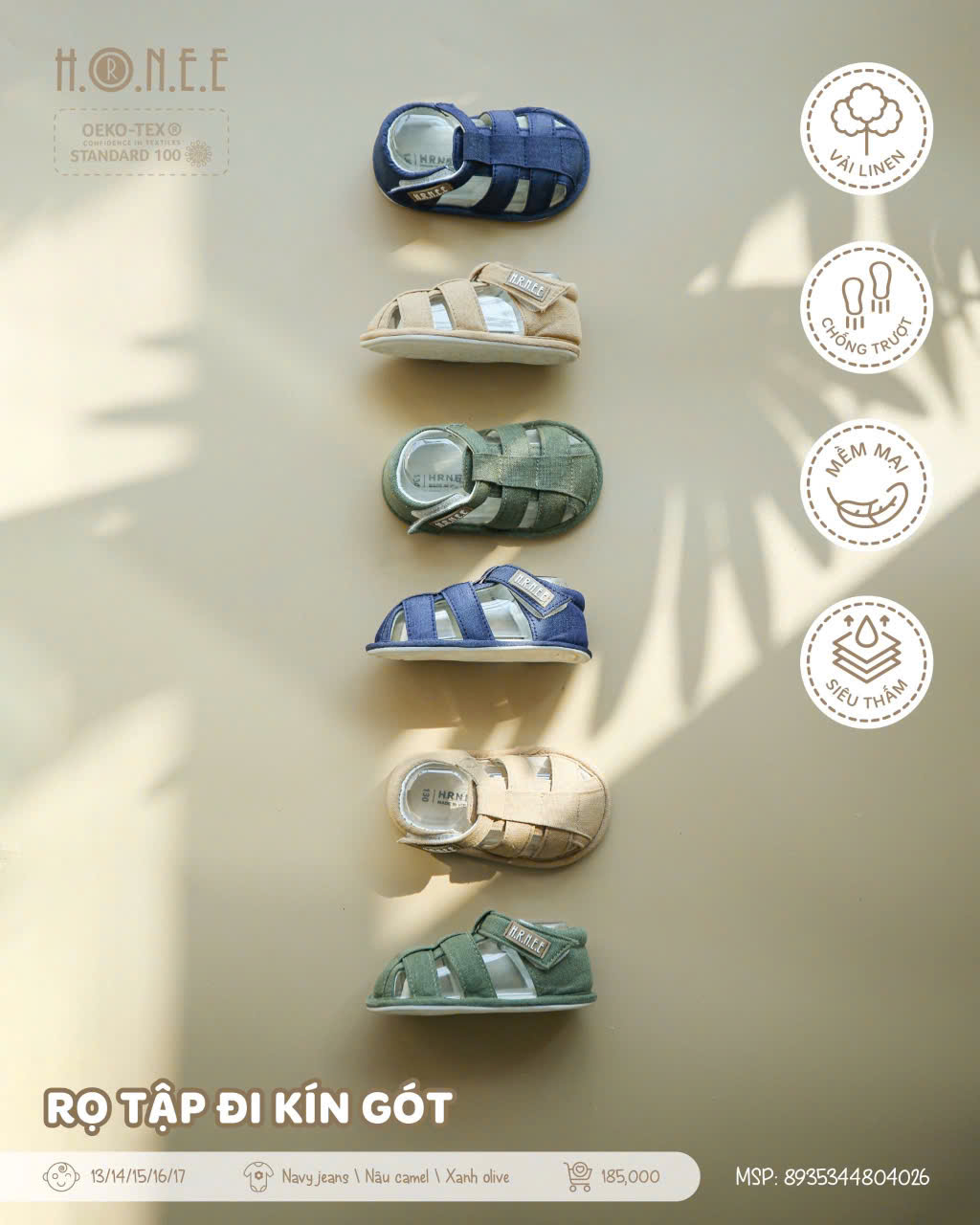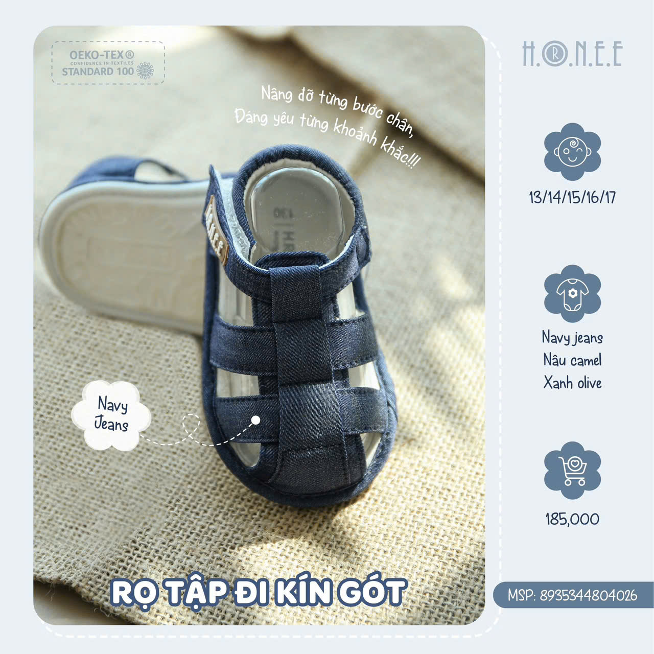 Rọ tập đi kín gót cho bé của HRNEE là lựa chọn hoàn hảo giúp bé học đi một cách an toàn và thoải mái. Được thiết kế đặc biệt để bảo vệ gót chân, sản phẩm giúp nâng đỡ toàn bộ đôi chân bé, mang lại sự ổn định và chắc chắn trong mỗi bước đi. Phần gót kín không chỉ bảo vệ đôi chân mà còn giúp bé di chuyển vững vàng, hạn chế tình trạng trượt ngã trong quá trình học đi.