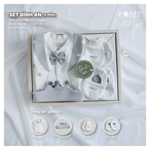 Set Bình An 4 Món Cho Bé Trai là món quà hoàn hảo, đầy ý nghĩa và sang trọng, giúp bé yêu luôn thoải mái, xinh xắn và nổi bật trong những ngày đầu đời.
