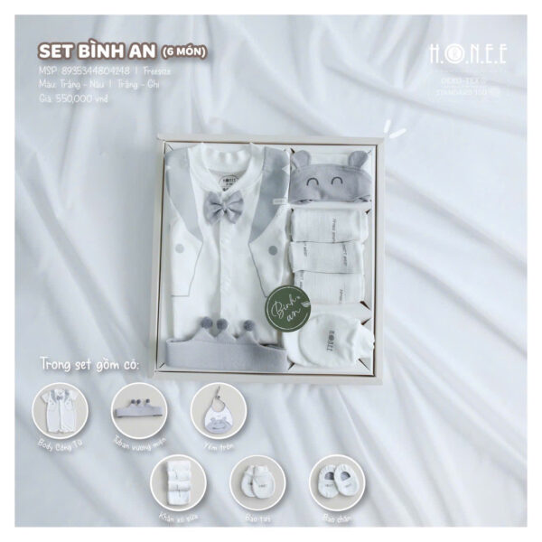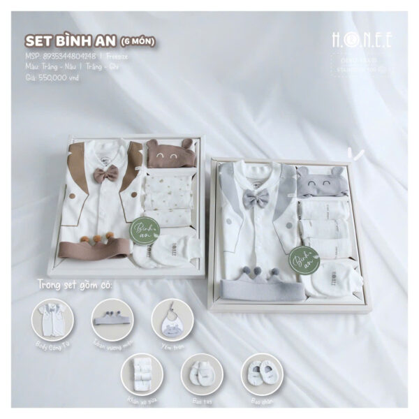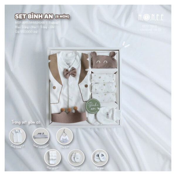 Set Bình An 6 Món Cho Bé Trai là món quà tuyệt vời, vừa lịch sự vừa sang trọng, giúp bé trai luôn thoải mái, dễ thương và nổi bật trong những sự kiện đặc biệt.