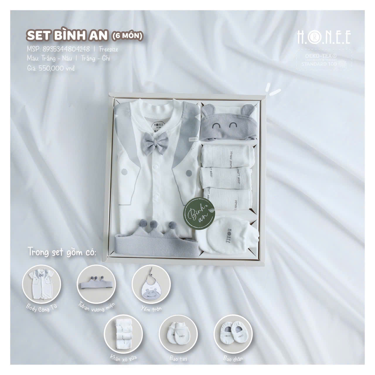 Chào đón bé trai yêu quý với bộ quà tặng đầy tháng Set Bình An 6 Món Cho Bé Trai, một món quà đầy ý nghĩa và sang trọng dành cho những dịp đặc biệt. Bộ quà này được thiết kế tinh tế, đầy đủ tiện ích, giúp bé trai luôn thoải mái và nổi bật trong những sự kiện quan trọng.