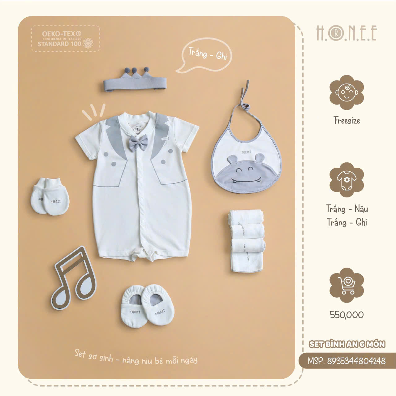 - Set Bao Tay: Bao tay mềm mại, bảo vệ làn da mỏng manh của bé mà không gây cảm giác gò bó. Thiết kế đơn giản, dễ sử dụng, giúp bé thoải mái trong mọi hoạt động mà không lo lắng về việc bị trầy xước.