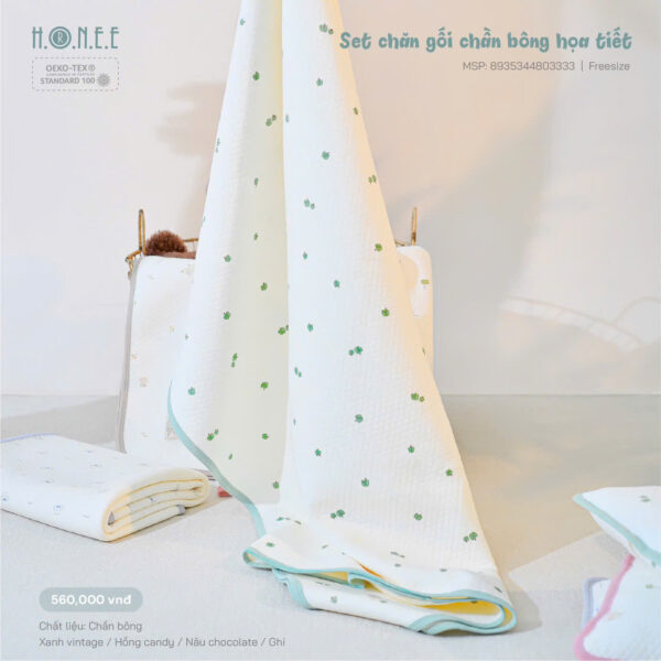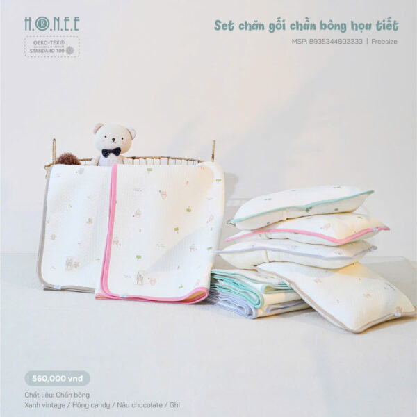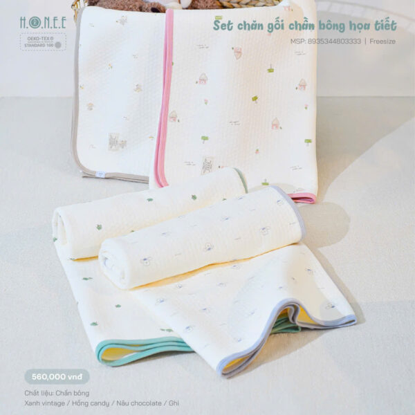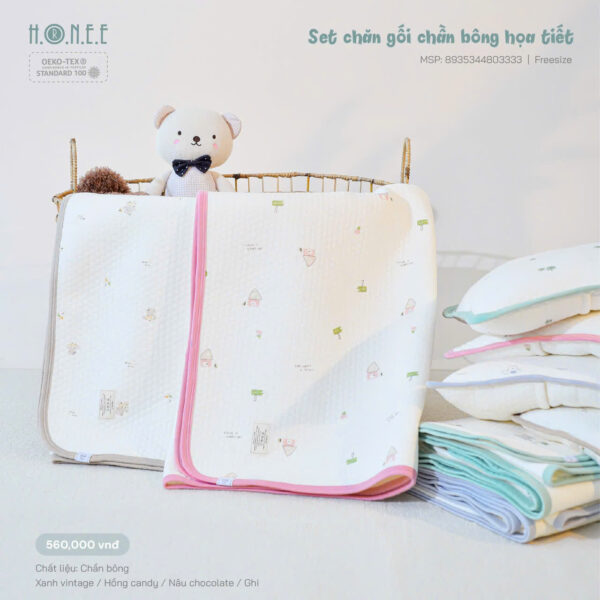 Bộ chăn gối chần bông HRNEE mềm mại, hoạ tiết đáng yêu, mang lại cảm giác ấm áp và dễ chịu cho bé. Kích thước rộng rãi m2 x m5, thoải mái cho bé quẫy đạp và vận động mà không lo bị hở. Sản phẩm an toàn, phù hợp cho làn da nhạy cảm của trẻ nhỏ.